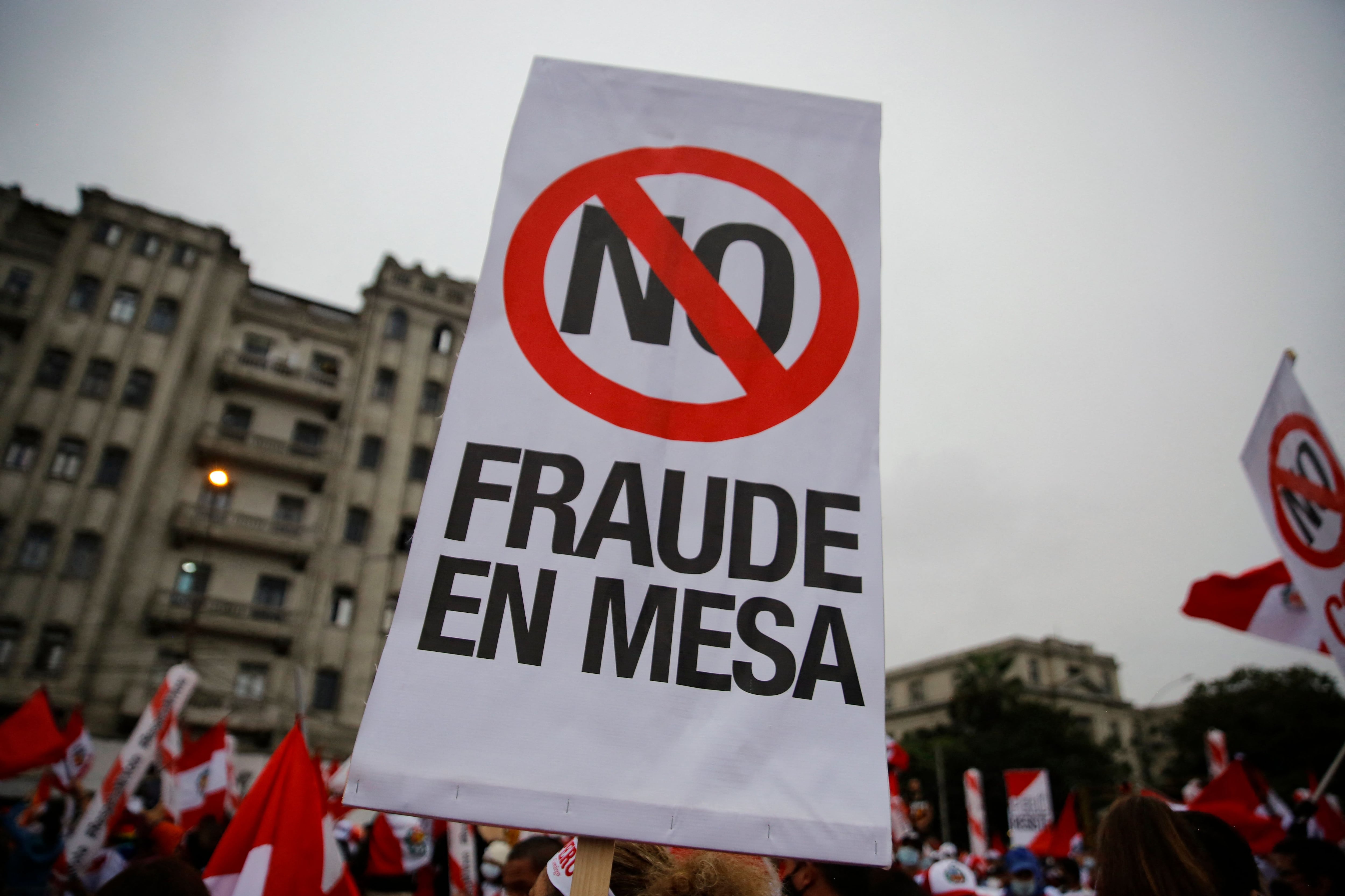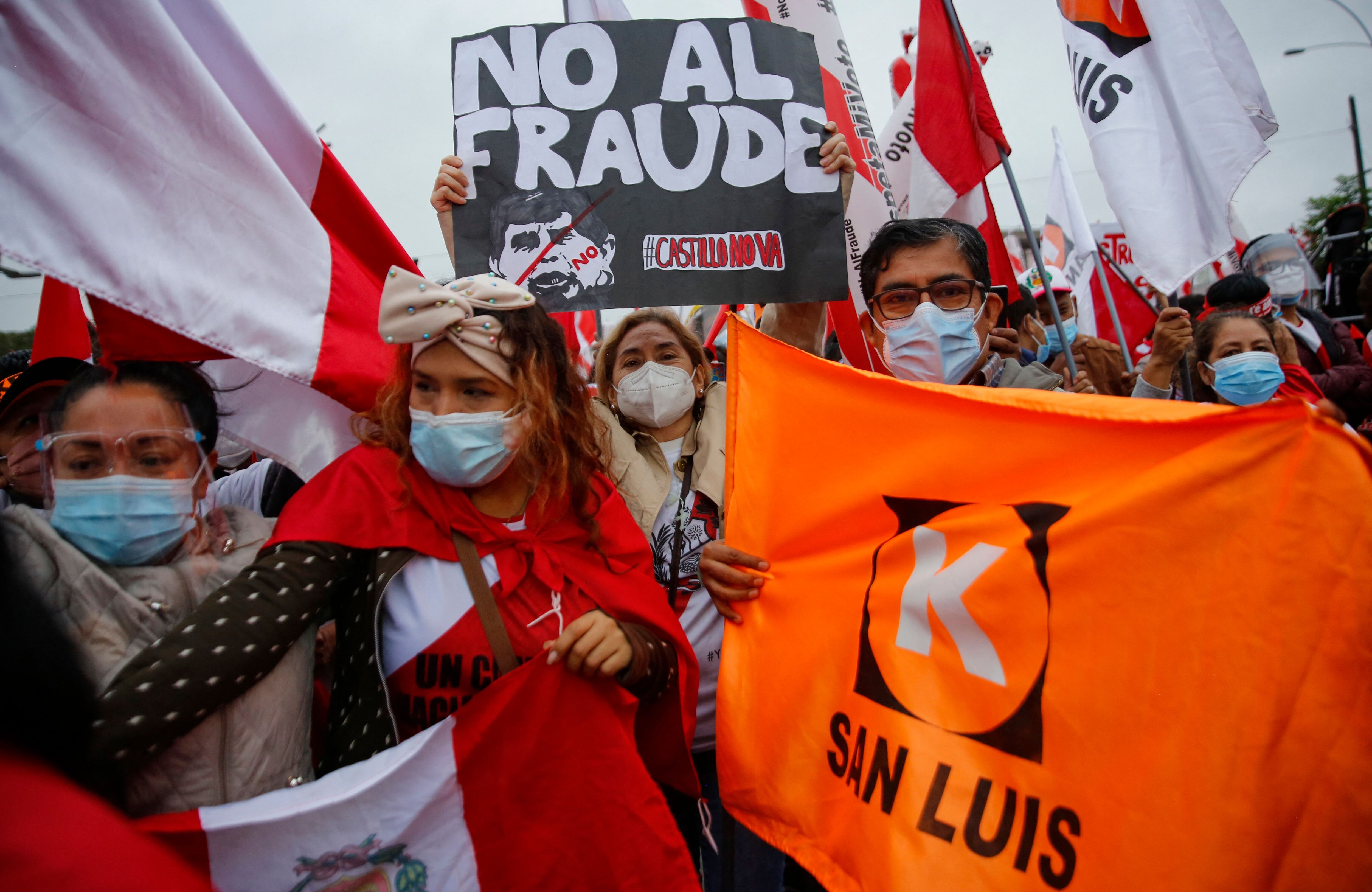 “Tengo que defender mi voto por mis hijos y por el futuro de mis nietos, porque ha habido fraude en las mesas. Si gana Castillo que gane limpio”, manifestó a la AFP María Alejandra Llenera, ama de casa de 56 años, mientras golpeaba una cacerola con un cucharón de madera.