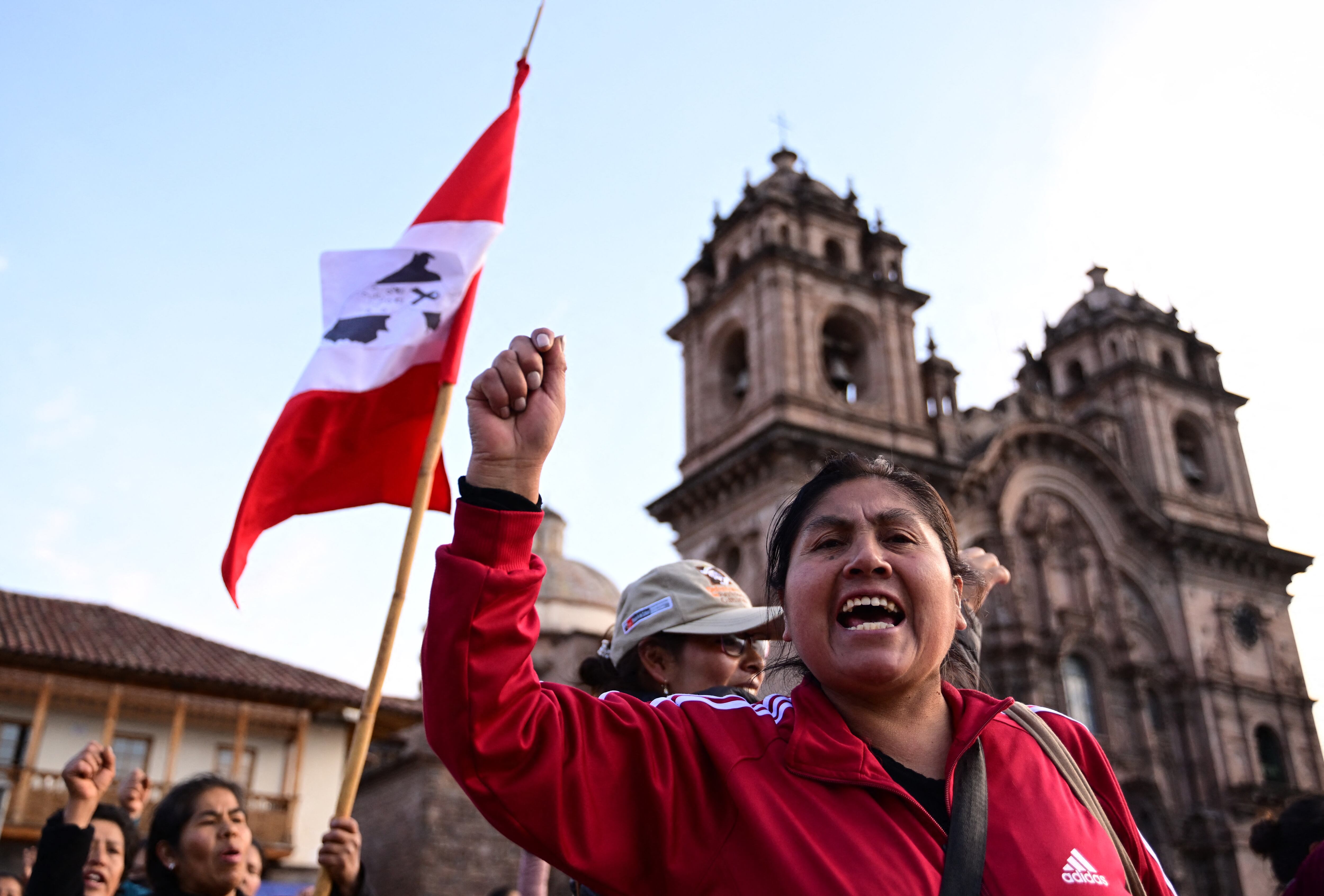 Algunas manifestaciones seguían activas este martes en el sur del país. En la Plaza de Armas de Cusco (sureste), cientos de personas, en su mayoría mujeres con coloridos trajes típicos, realizaron una marcha de protesta con un ataúd de cartón que lleva la imagen de Dina Boluarte, al que luego le prendieron fuego.