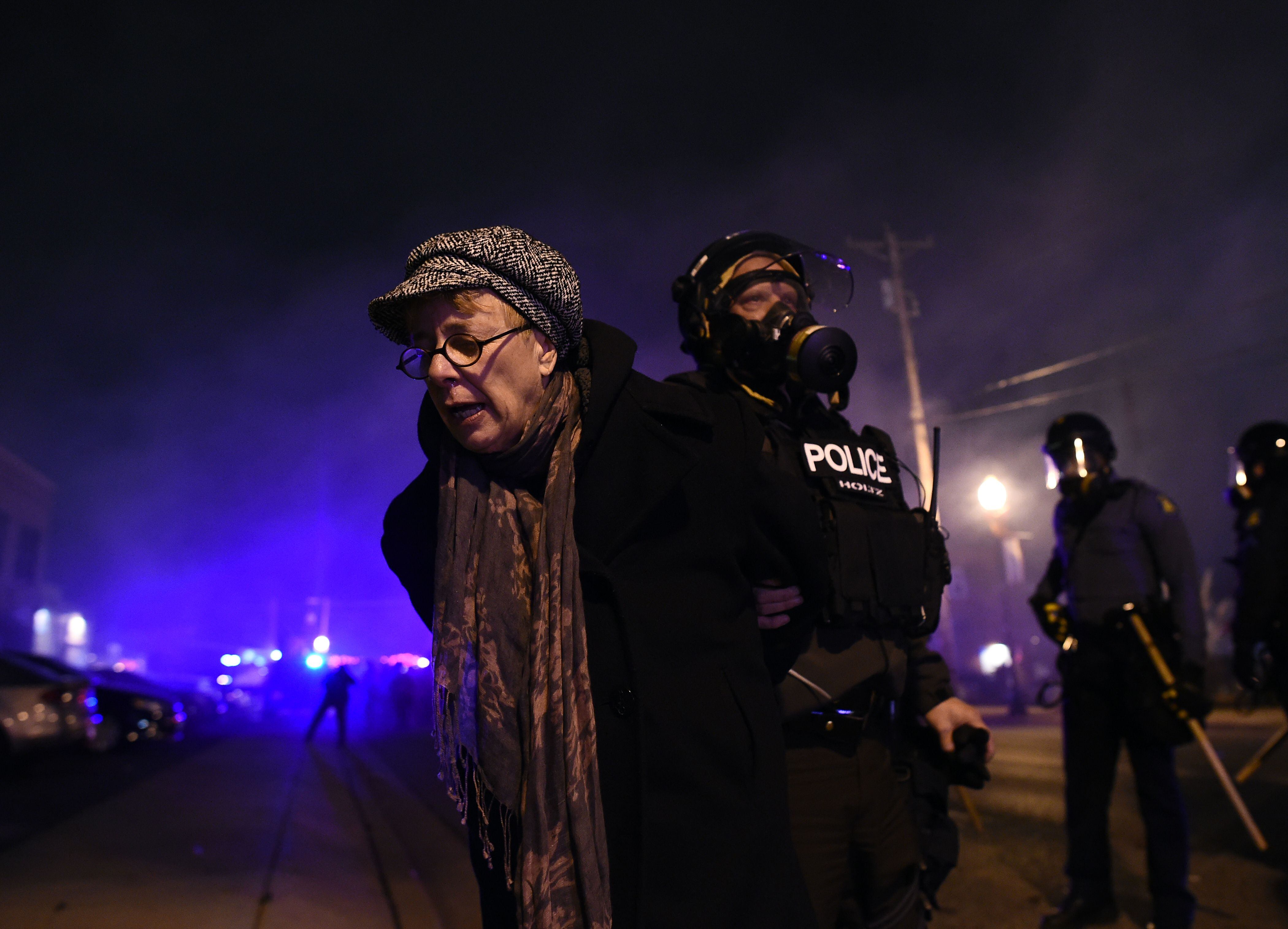 La policía de Ferguson lanzó gas lacrimógeno para dispersar las protestas contra la decisión de un gran jurado de no presentar cargos contra el policía blanco que mató a un joven negro desarmado, en un polémico caso en agosto, constató la AFP.