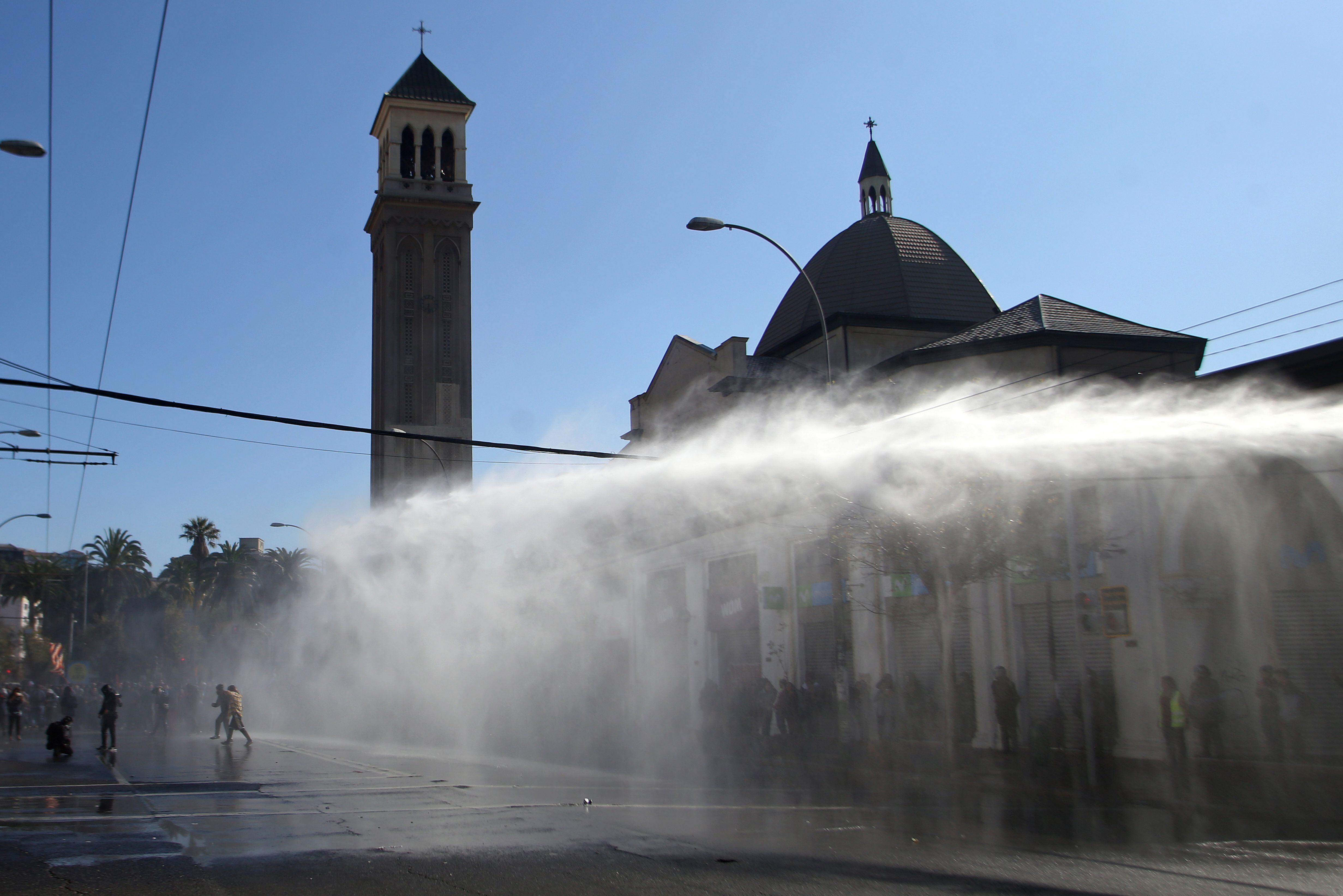 Mientras Piñera desgranaba las medidas adoptadas en sus escasos tres meses al frente del gobierno, y las reformas que pretende llevar a cabo, la Policía tuvo que reprimir a los miles de manifestantes con reivindicaciones feministas que se han tomado la agenda de Chile en las últimas semanas y reclamos para reformar el sistema privado de pensiones.