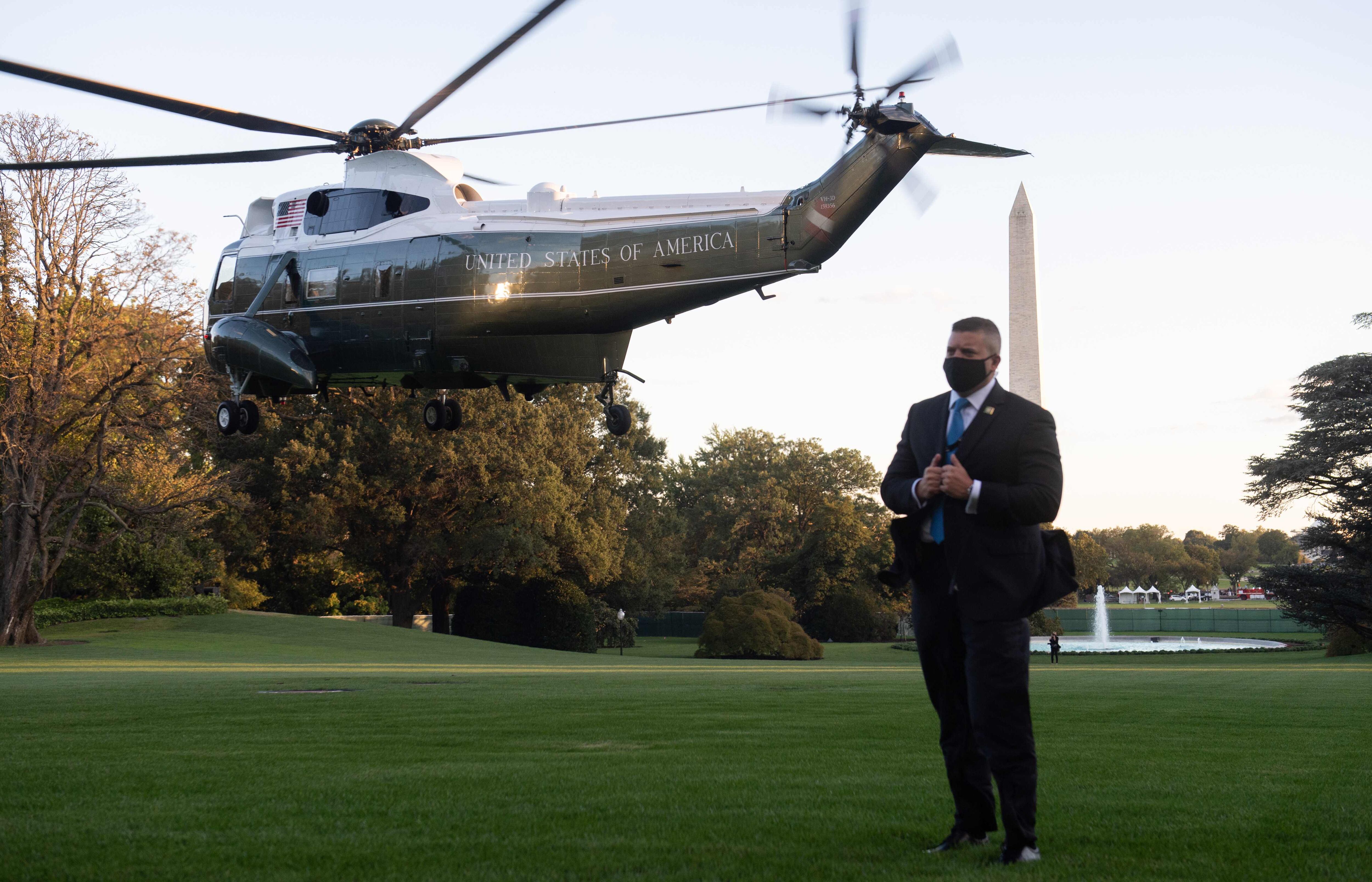 El mandatario salió de la Casa Blanca caminando, sin decir una palabra y portando una mascarilla para ser trasladado en helicóptero al hospital militar de Walter Reed, a las afueras de Washington.