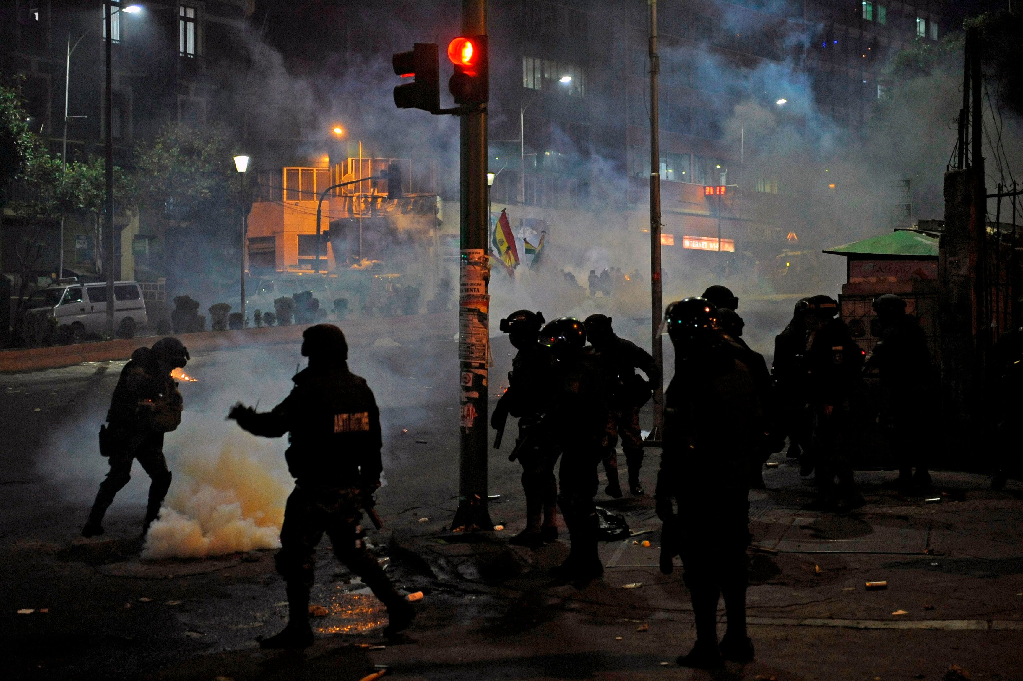 Simultáneamente, decenas de universitarios trataron de aproximarse a la casa de gobierno, situada en la plaza Murillo, lo que impidieron policías antimotines que arrojaron gases lacrimógenos.