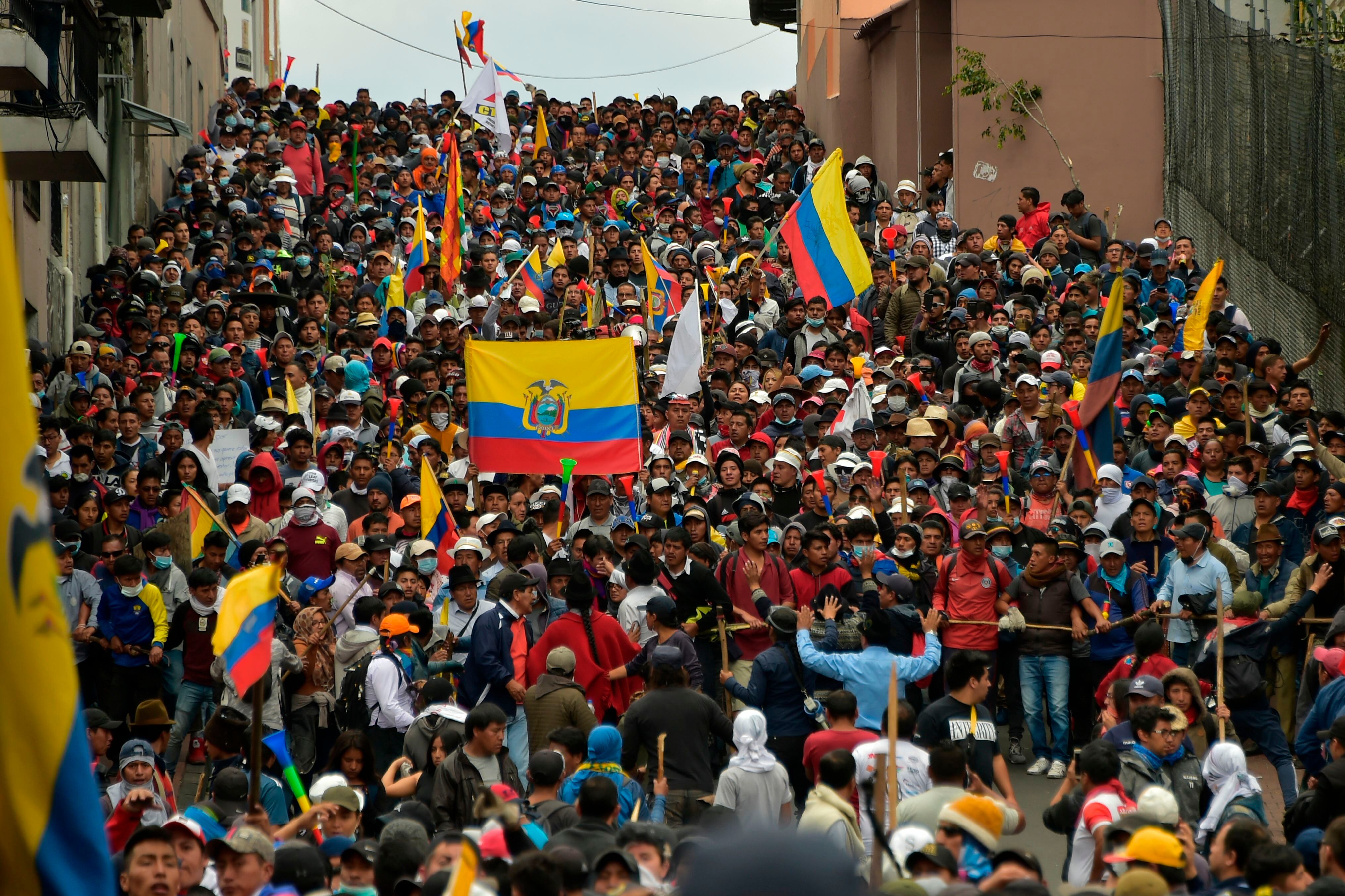 "Nos tiene aquí la indignación ecuatoriana contra el paquetazo", señaló Gonzalo Espín, dirigente de los indígenas de Cotopaxi (centro). "Mientras no desista, seguiremos aquí", advirtió.