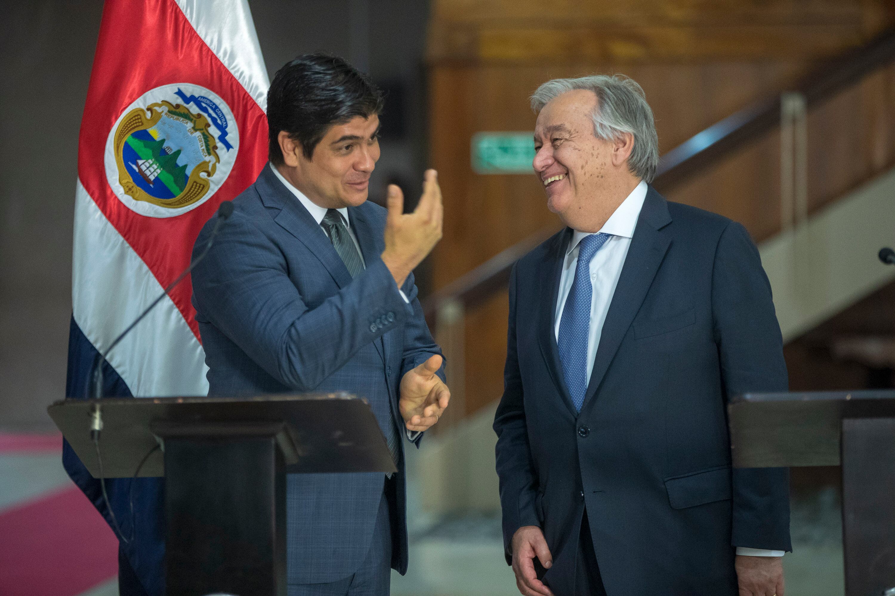 En la conferencia de prensa dada este viernes en Casa Presidencial en ocasión de la visita del secretario general de la ONU, el presidente Alvarado aseveró que Costa Rica seguirá pronunciándose hasta encontrar la ruta de paz que beneficie no solo a Nicaragua sino a la región.