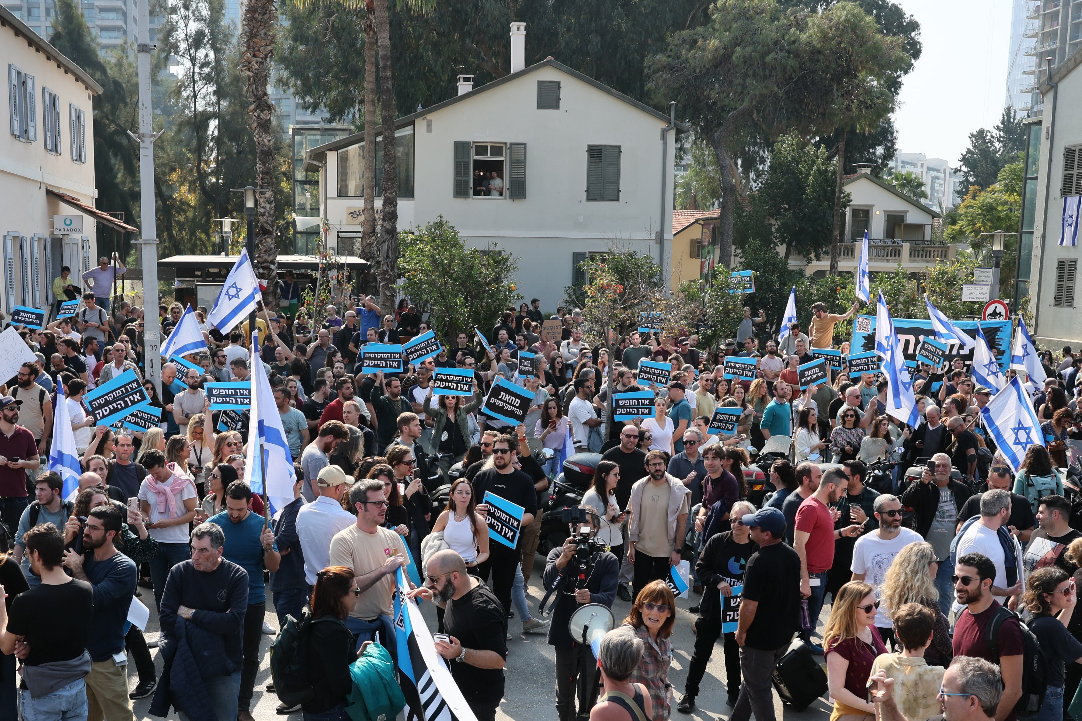 “Sin democracia no hay alta tecnología”, rezaban las pancartas en la explanada de Sarona, cerca de uno de los distritos comerciales de la ciudad, donde un centenar de empresas convocaron una huelga.