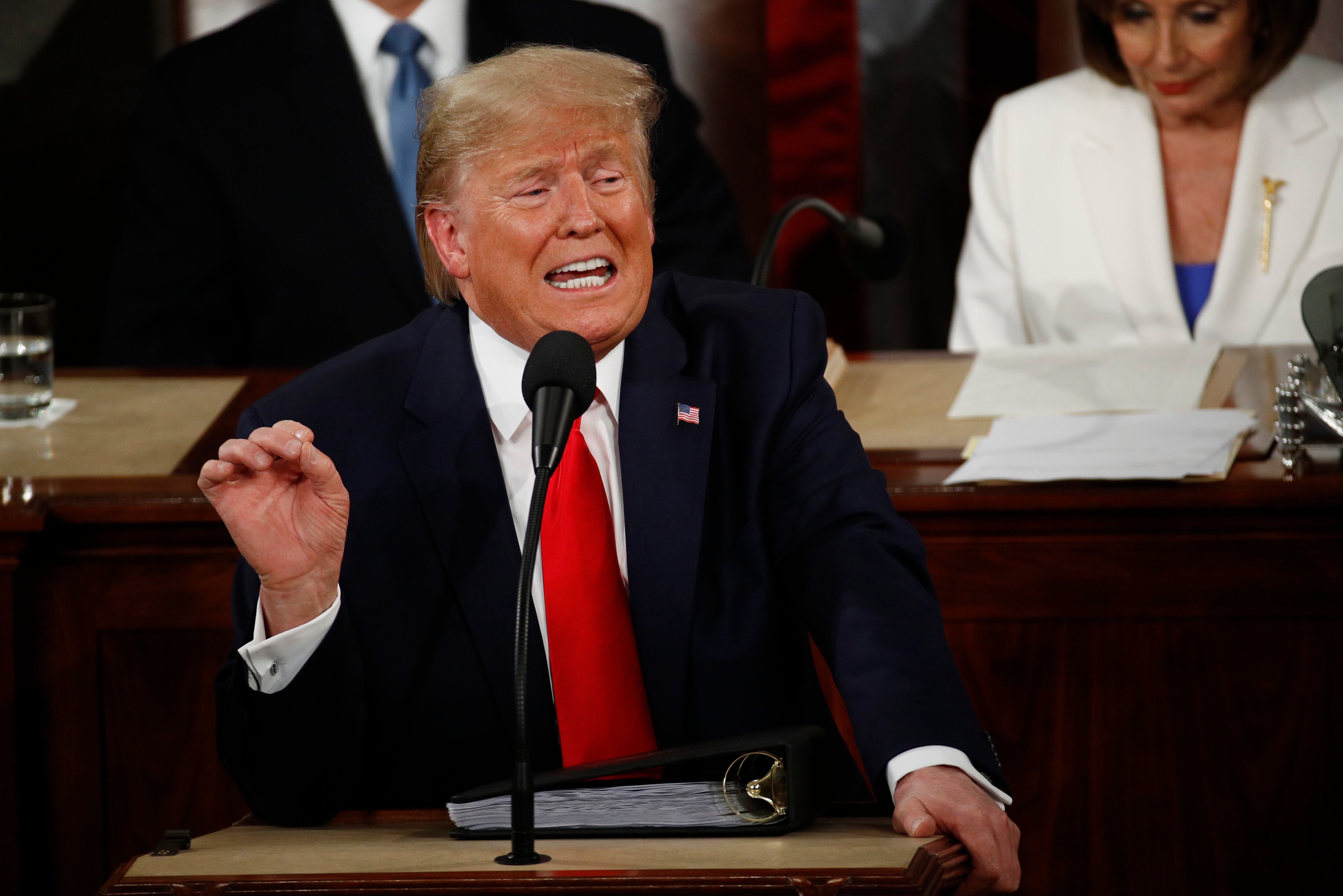 Dos gestos políticos trasmitidos en vivo por televisión hablaron por sí solos. Al comienzo, Trump se negó a darle el habitual apretón de manos a la presidenta de la Cámara Baja, Nancy Pelosi. Y al final, la líder demócrata, ubicada detrás del mandatario durante toda su exposición, rompió en pedazos su copia del discurso.