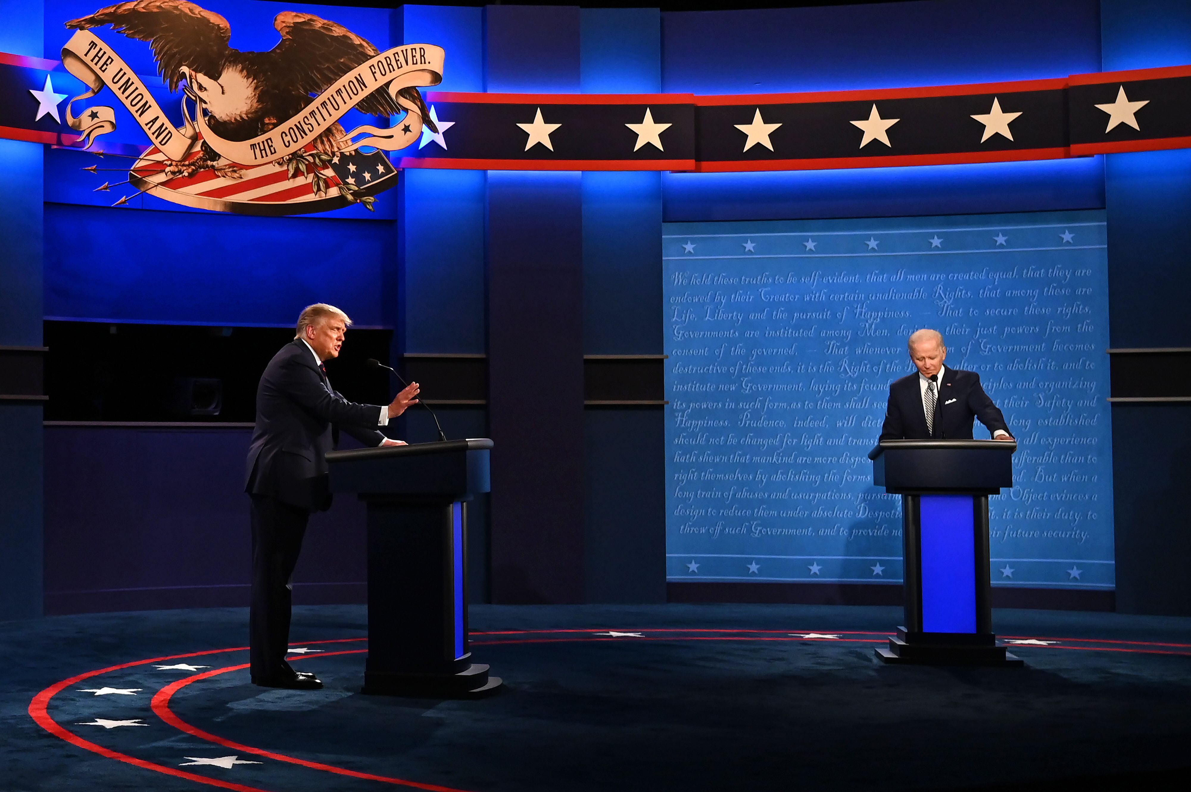 No hubo apretón de manos cuando los dos septuagenarios subieron al escenario y, si bien esto se debió a las restricciones por la pandemia de covid-19, la ausencia del saludo tradicional simbolizó la profunda división en el país en la cuenta regresiva hacia el 3 de noviembre.