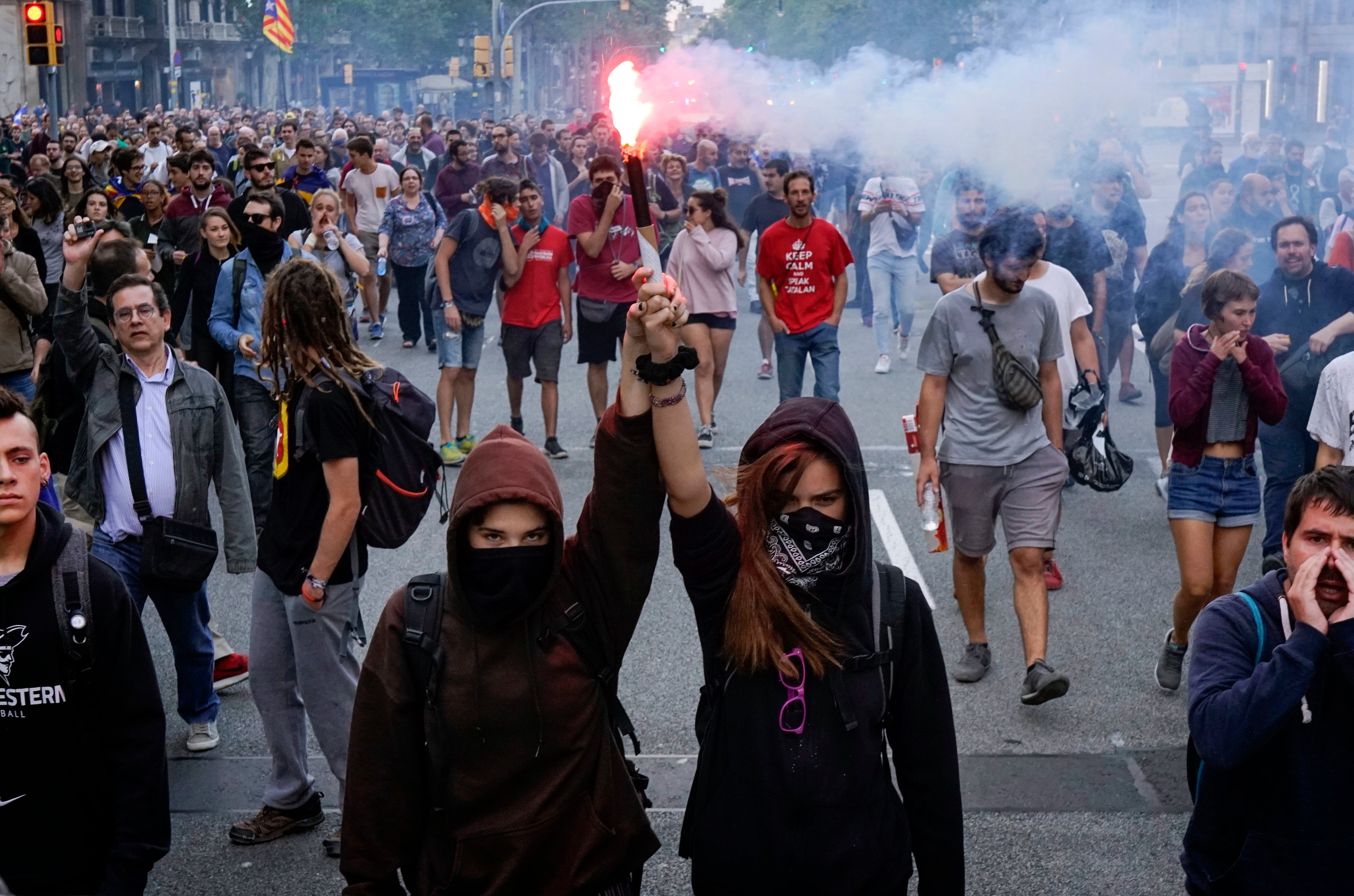 Por la noche, cientos de manifestantes derribaron las barreras que protegen la entrada del Parlamento regional, por lo que la Policía autónoma intervino, mientras algunos militantes independentistas radicales les lanzaban piedras y trataban de montar barricadas con cubos de basura, antes de que la situación volviera a la calma.