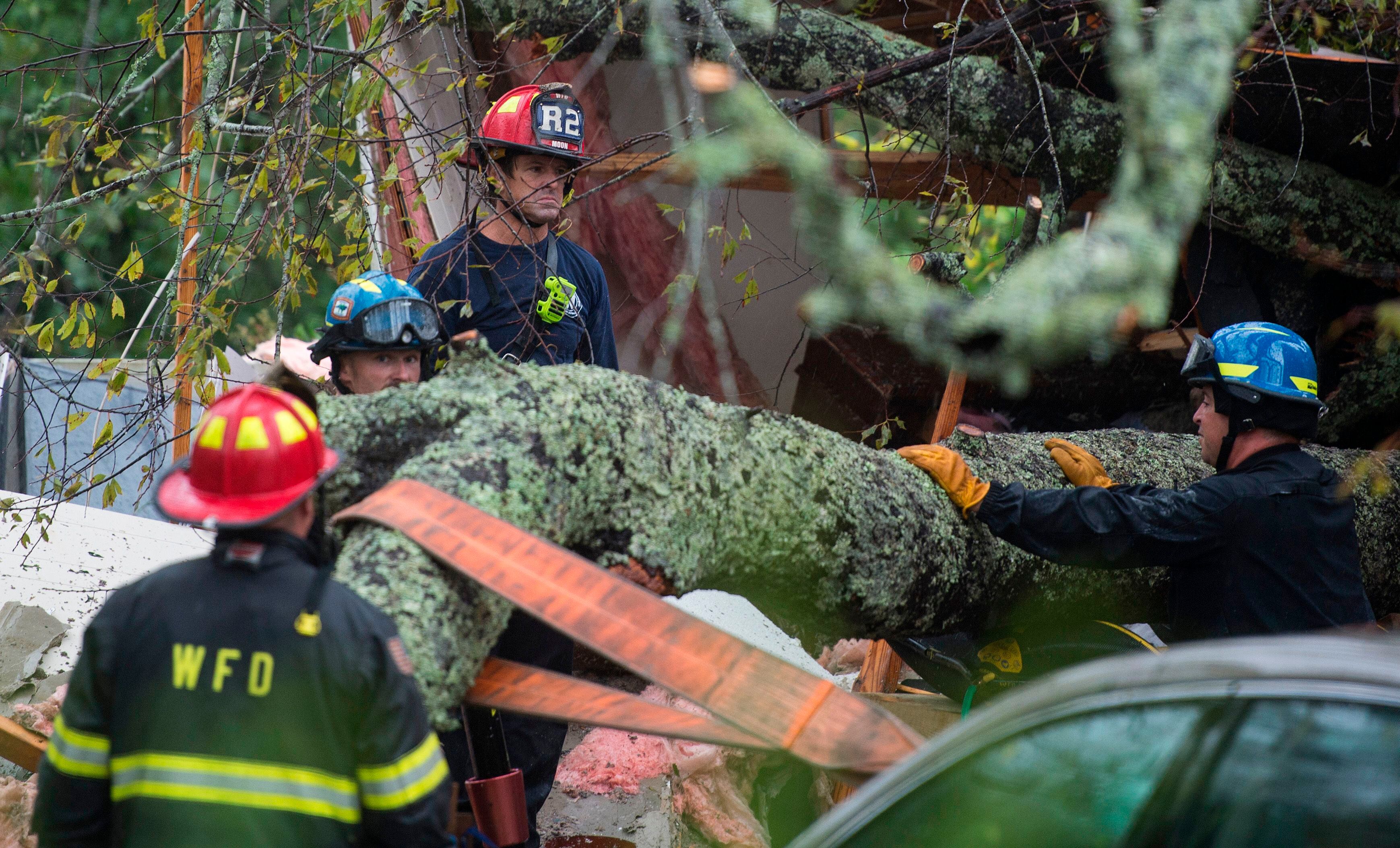 En la mañana un árbol enorme cayó sobre la pequeña casa de una planta cuando el huracán Florence irrumpió con violencia en la costa este de Estados Unidos.