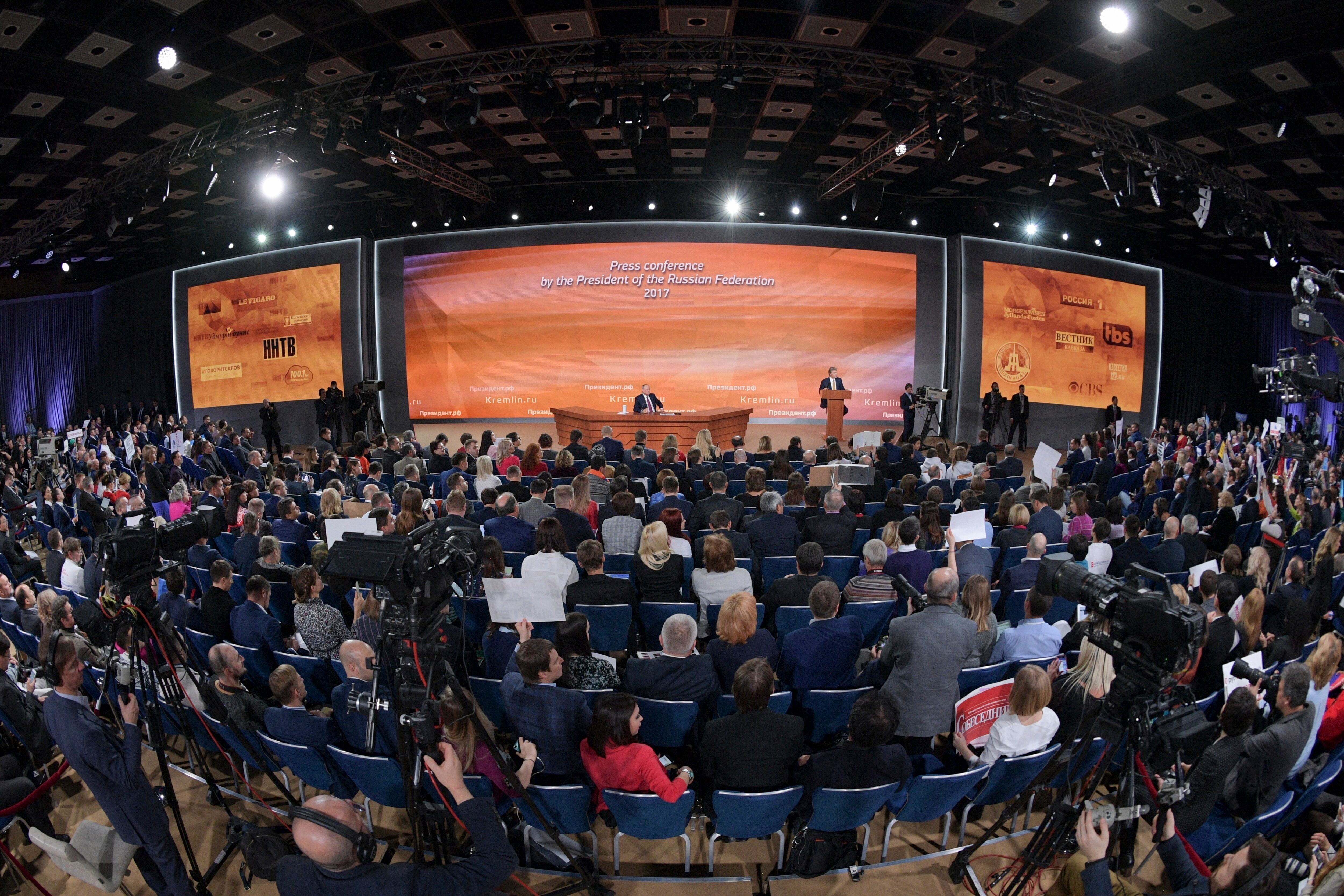 Una semana después de haber hecho oficial su candidatura para un cuarto mandato presidencial, hasta el 2020, Putin se prestó a un ejercicio mediático que se repite cada año y respondió durante casi cuatro horas a preguntas ante 1.600 periodistas acreditados.