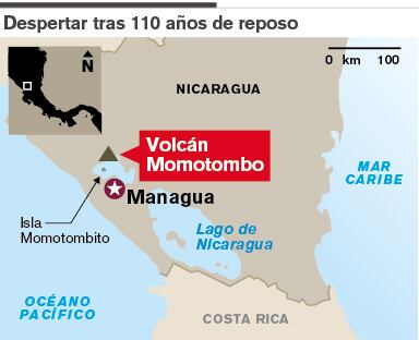 Managua. AFP. Luego de 110 años de quietud, el volcán Momotombo hizo erupción este miércoles, con explosiones de gases, cenizas, piedras y pequeñas cantidades de lava que corrieron hacia lugares despoblados, por lo que las autoridades descartan un riesgo para las poblaciones cercanas, informaron fuentes oficiales.