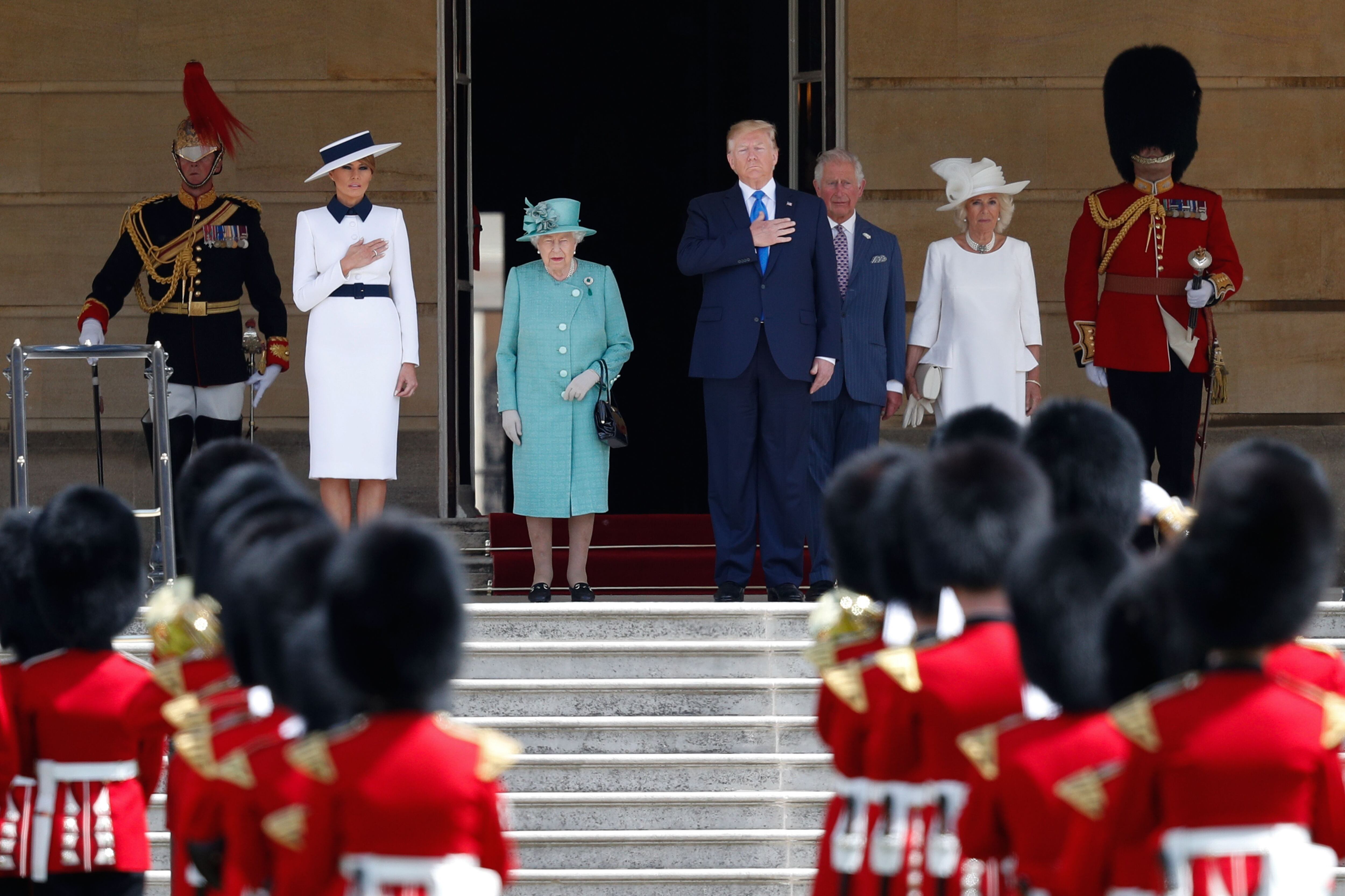 El presidente de Estados Unidos, Donald Trump inició este lunes un viaje oficial al Reino Unido. El mandatario fue recibido en una ceremoniosa bienvenida por parte de la reina Isabel II en el palacio de Buckingham, donde sin embargo no se hospedará, como tradicionalmente se realiza con los invitados más importantes de Su Majestad Británica.