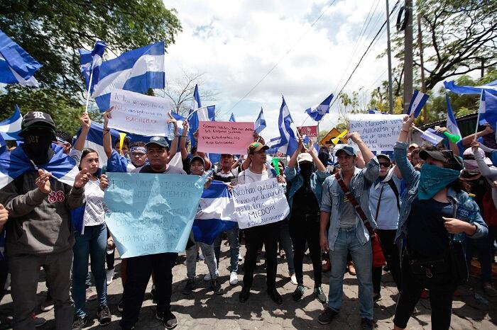 Las protestas comenzaron el 18 de abril en rechazo de una reforma del seguro social, que desencadenó inesperadas y masivas protestas en todo el país ante la ira que causó la represión del gobierno y para reclamar democracia y libertad.