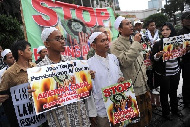 Ante la idea de quemar 200 copias del Corán, la secretaria de Estado de EE. UU., Hillary Clinton, instó al reverendo Terry Jones, pastor de la iglesia Dove World Outreach Center, en Gainesville (Florida), a desistir de ese plan y condenó dicha propuesta.