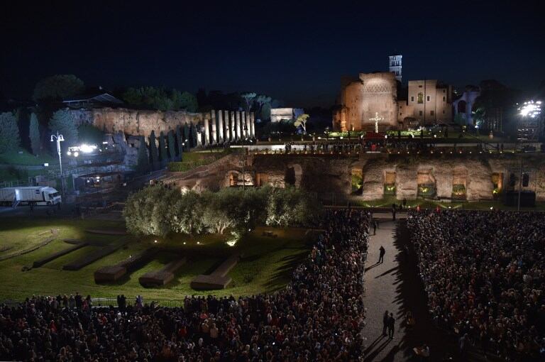 Francisco, de 80 años, preside como el año pasado al rito desde la terraza del Palatino, frente al imponente anfiteatro romano, sin recorrer a pie las 14 estaciones.