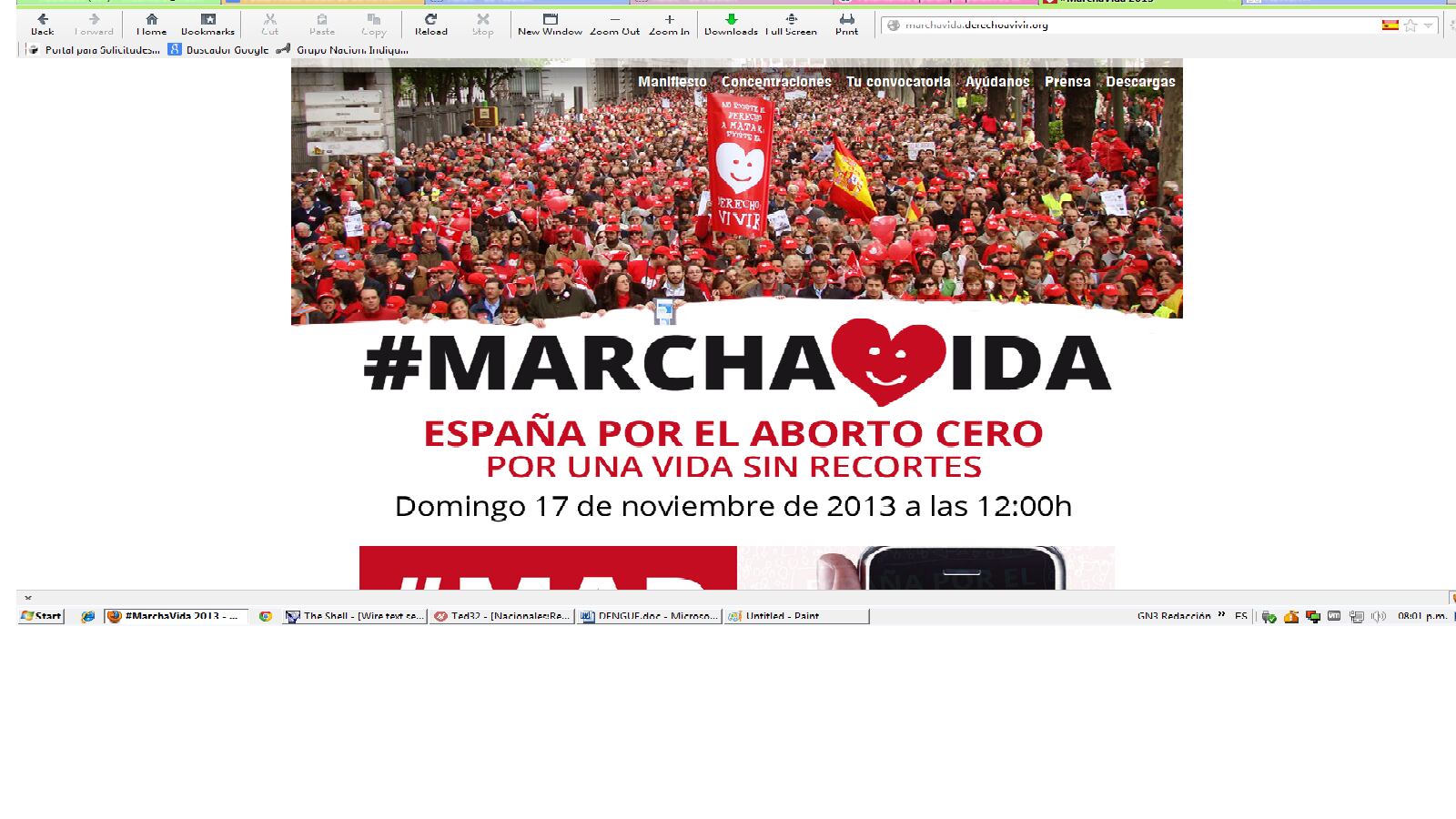 Marcha Vida 2013 es el nombre de la manifestación convocada hoy en España, país que se suma a las marchas de Bélgica, Mérida (México); Guayaquil (Ecuador); Bogotá (Colombia) y San José (Costa Rica)