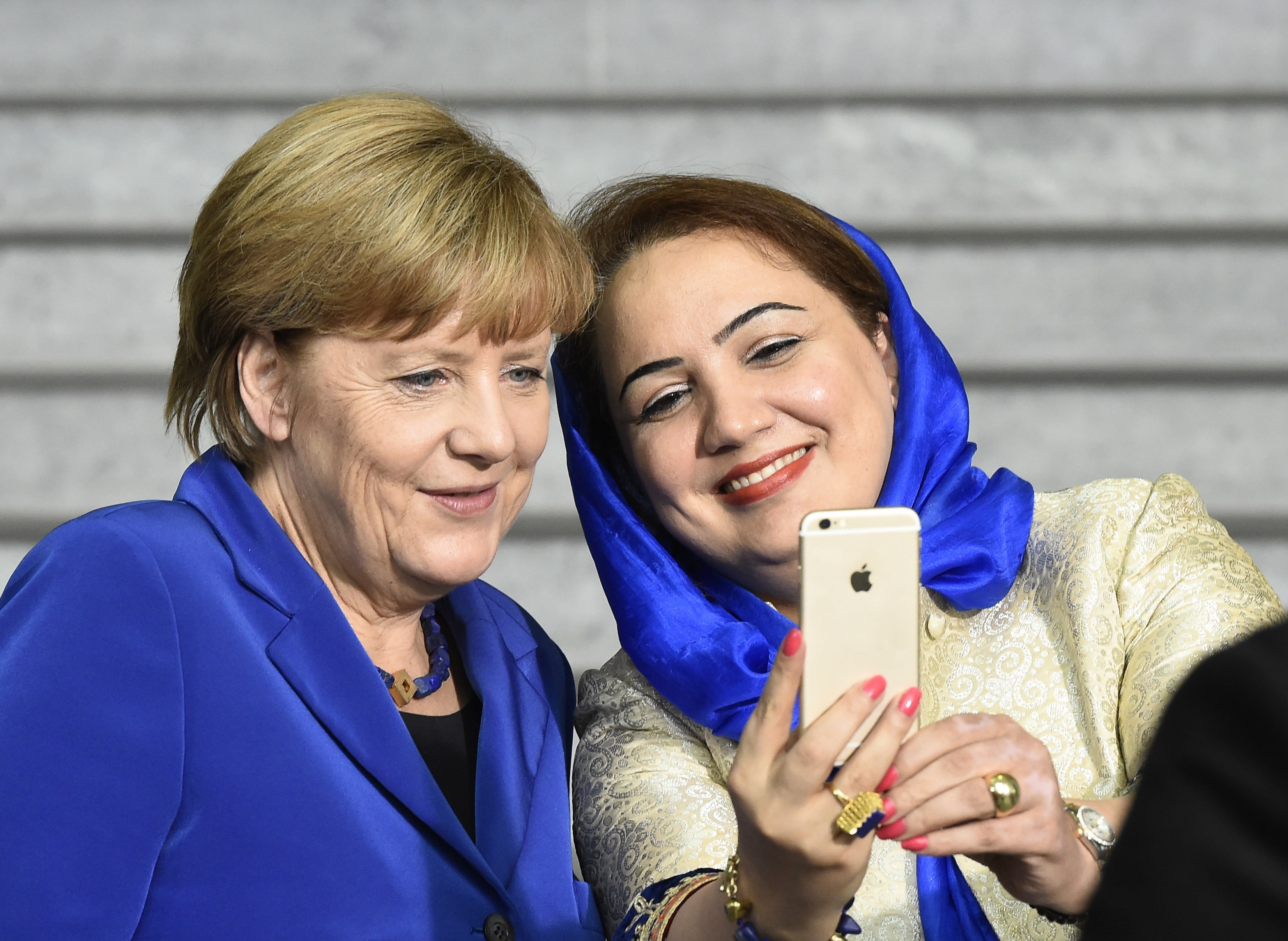 Su imagen, con la crisis de los refugiados, ha dado un nuevo giro y el semanario Der Spiegel llegó a caricaturizarla como una "Santa Angela de Calcuta", por representar la acogida generosa de quienes huyen de conflictos como el sirio, frente a las presiones internas para cerrar fronteras.
