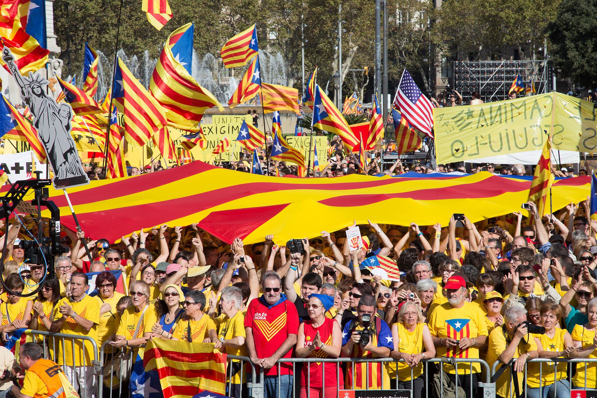 En los años siguientes, haciendo gala de una organización admirable, realizaron una enorme cadena humana de 400 kilómetros de norte a sur de la región y una V gigante en dos avenidas de Barcelona con las franjas rojas y doradas de la bandera catalana.