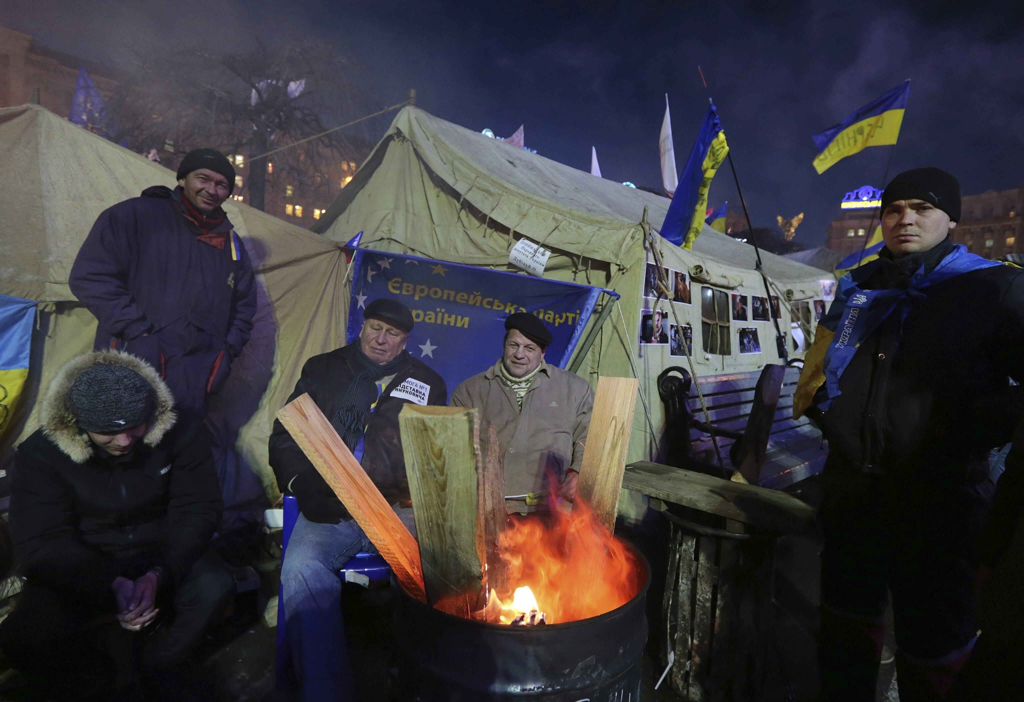 Los manifestantes instalaron varias tiendas cerca de la sede del gobierno y comenzaron a levantar barricadas con cestas de flores, según imágenes difundidas por la televisión ucraniana.