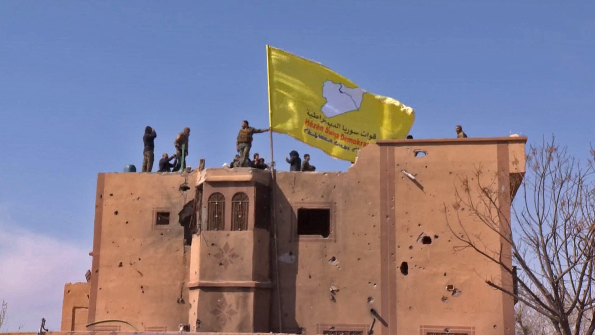 El sábado, las FDS levantaron su brillante bandera amarilla sobre una casa en la que los milicianos izaron una vez su famosa bandera negra. Debajo se extendía un campo destrozado por la batalla, sembrado de trincheras y cráteres de bombas y lleno de carpas quemadas, restos retorcidos de vehículos quemados, explosivos no utilizados y unos pocos cadáveres.