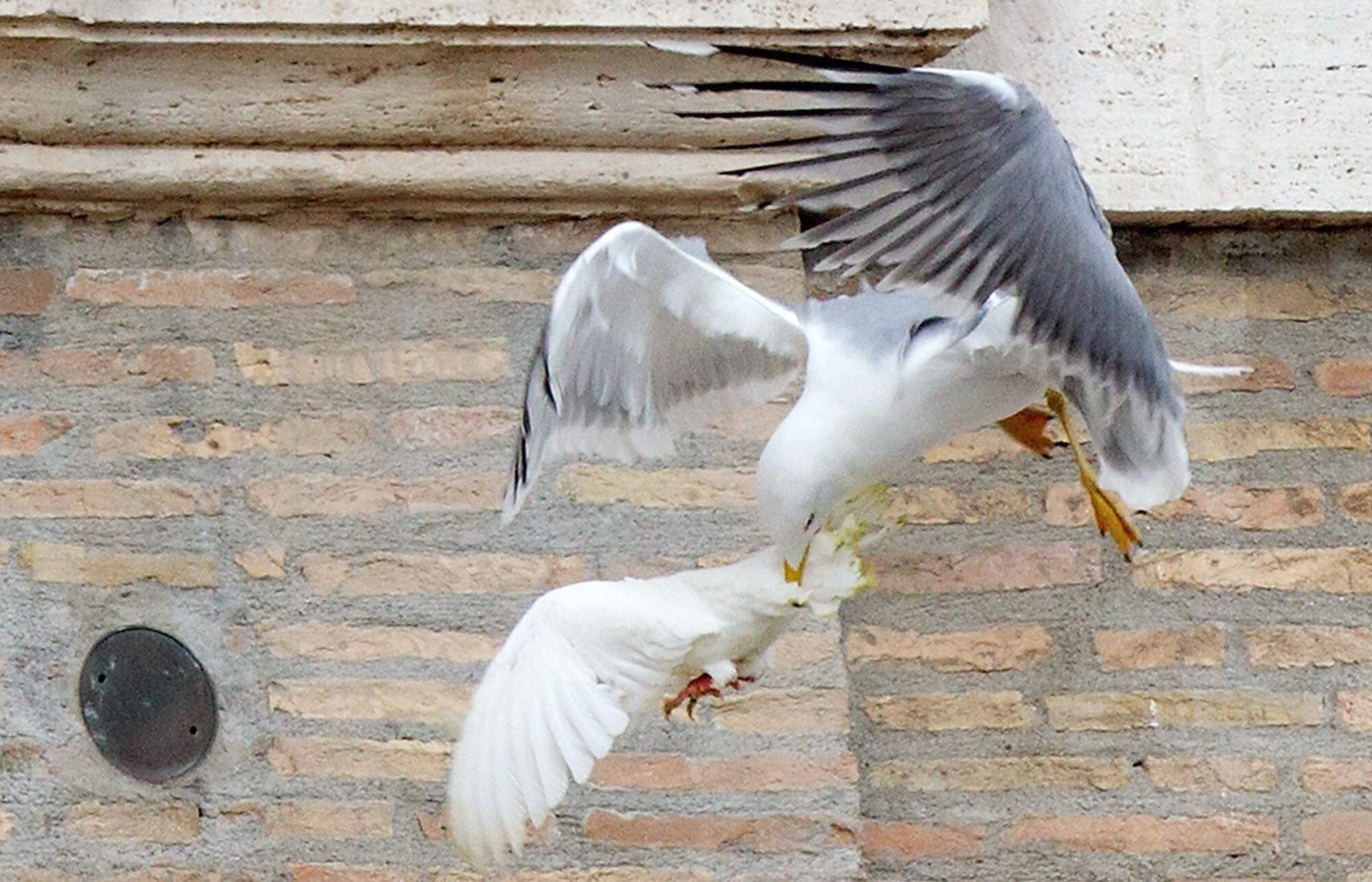 Ante la vista de miles de personas reunidas en la plaza de San Pedro, una gaviota y un cuervo negro grande se abalanzaron contra las palomas apenas fueron lanzadas desde una ventana del Palacio Apostólico.