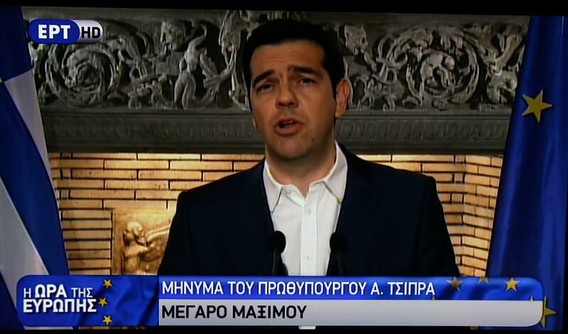 “Se nos presenta una responsabilidad histórica para decidir el futuro del país, en los próximos días habrá que tomar decisiones que afectarán a las próximas generaciones”, dijo Tsipras, que habló desde la residencia del primer ministro en Atenas durante cinco minutos.