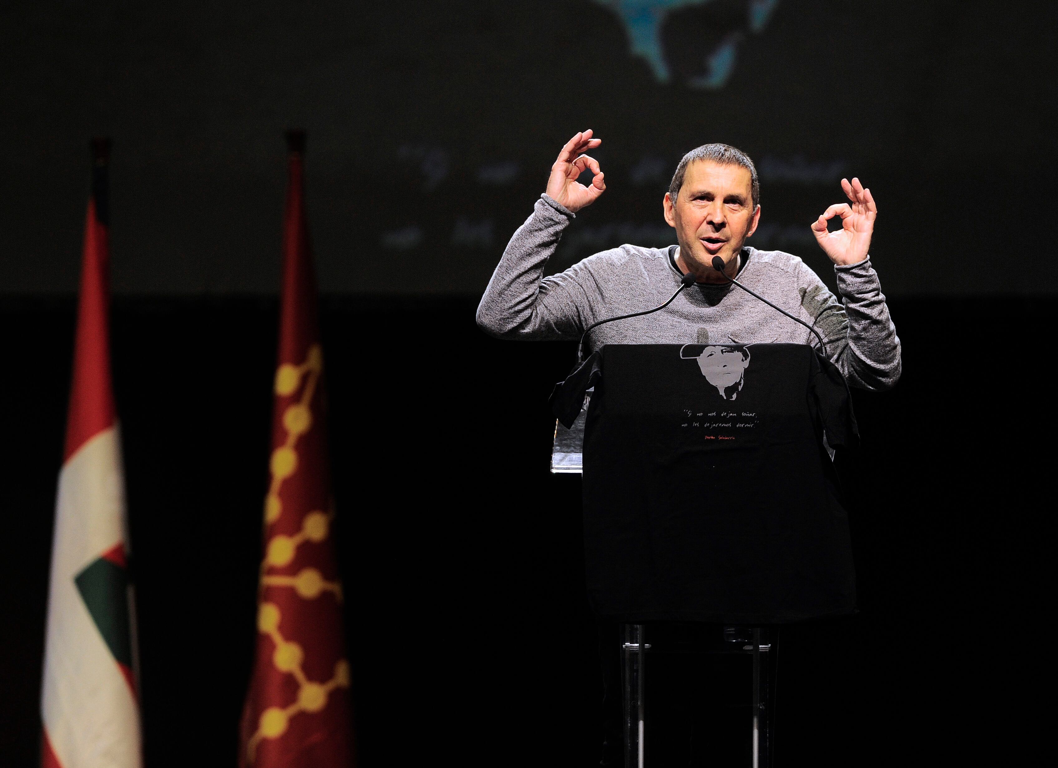 "Somos militantes políticos que luchamos por la libertad de este país y no vamos a dejar de hacerlo nunca", lanzó ante los miles de hombres y mujeres de todas edades que abarrotaban el Velódromo de Anoeta, emblemático escenario de citas políticas.