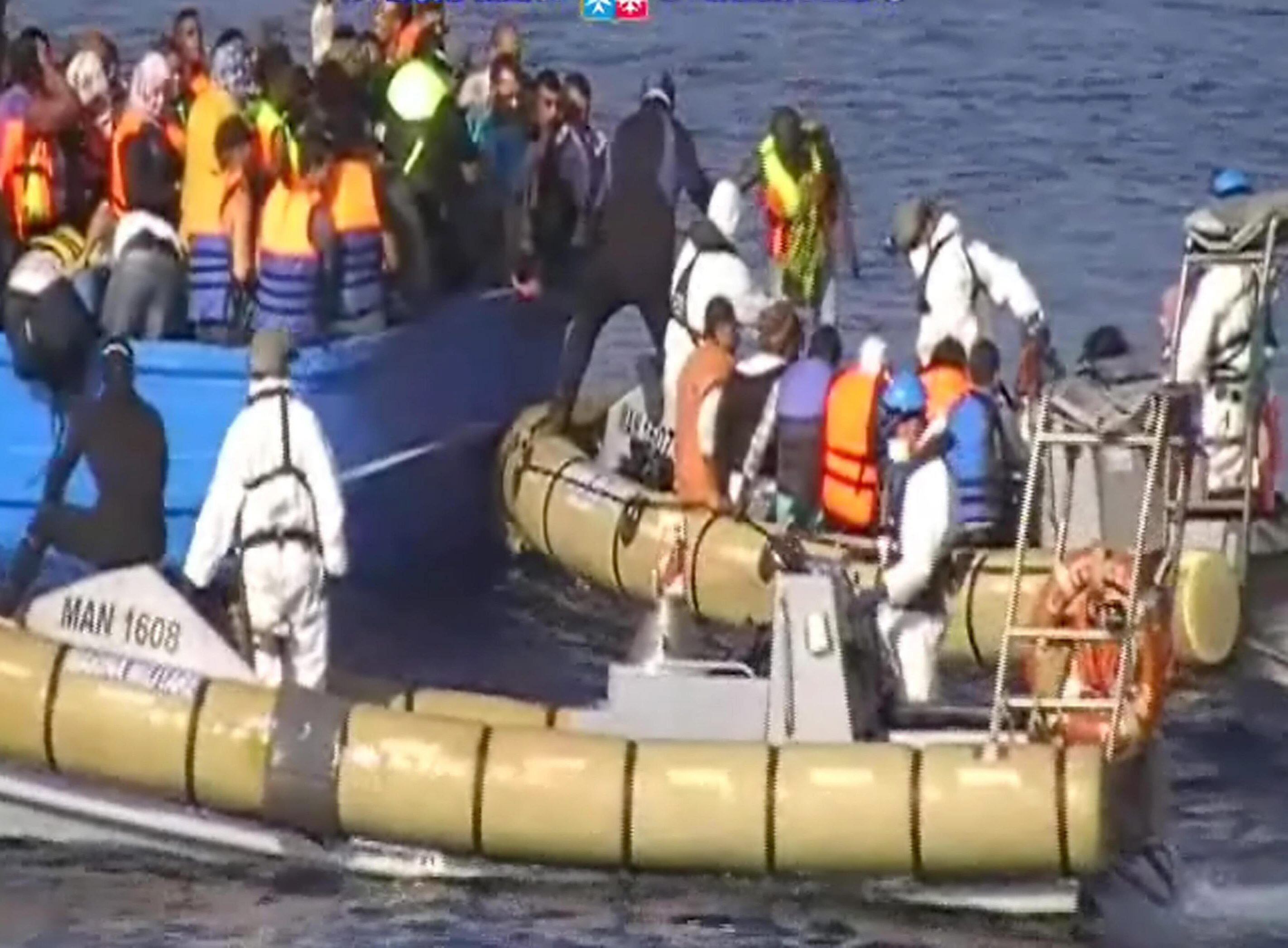 Este grupo fue asistido por una embarcación croata y por otra de la "Guardia di Finanza" italiana, cuando se encontraba a la deriva en una lancha neumática a pocas millas de la costa de Egipto.
