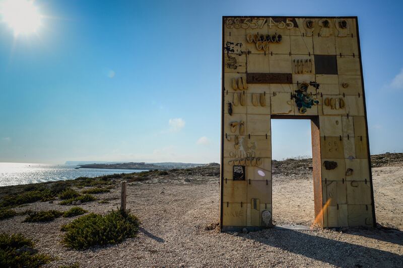 Un simple y sugestivo monumento sobre el mar, llamado la Puerta de Europa, con objetos tridimensionales que recuerdan lo que se carga y pierde en esa dramática travesía, rinde homenaje a todos los inmigrantes que han perdido la vida intentando entrar al Viejo Continente.