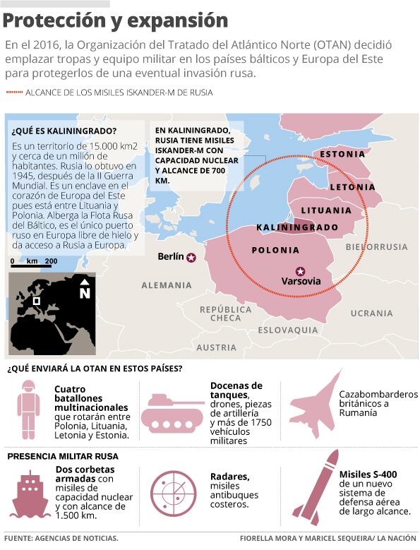 Ante la decisión adoptada en Varsovia, el Kremlin no se paralizó. En noviembre desplegó en el enclave de Kaliningrado (frente al mar Báltico, entre Lituania y Polonia) misiles S-400 tierra-aire e Iskander.