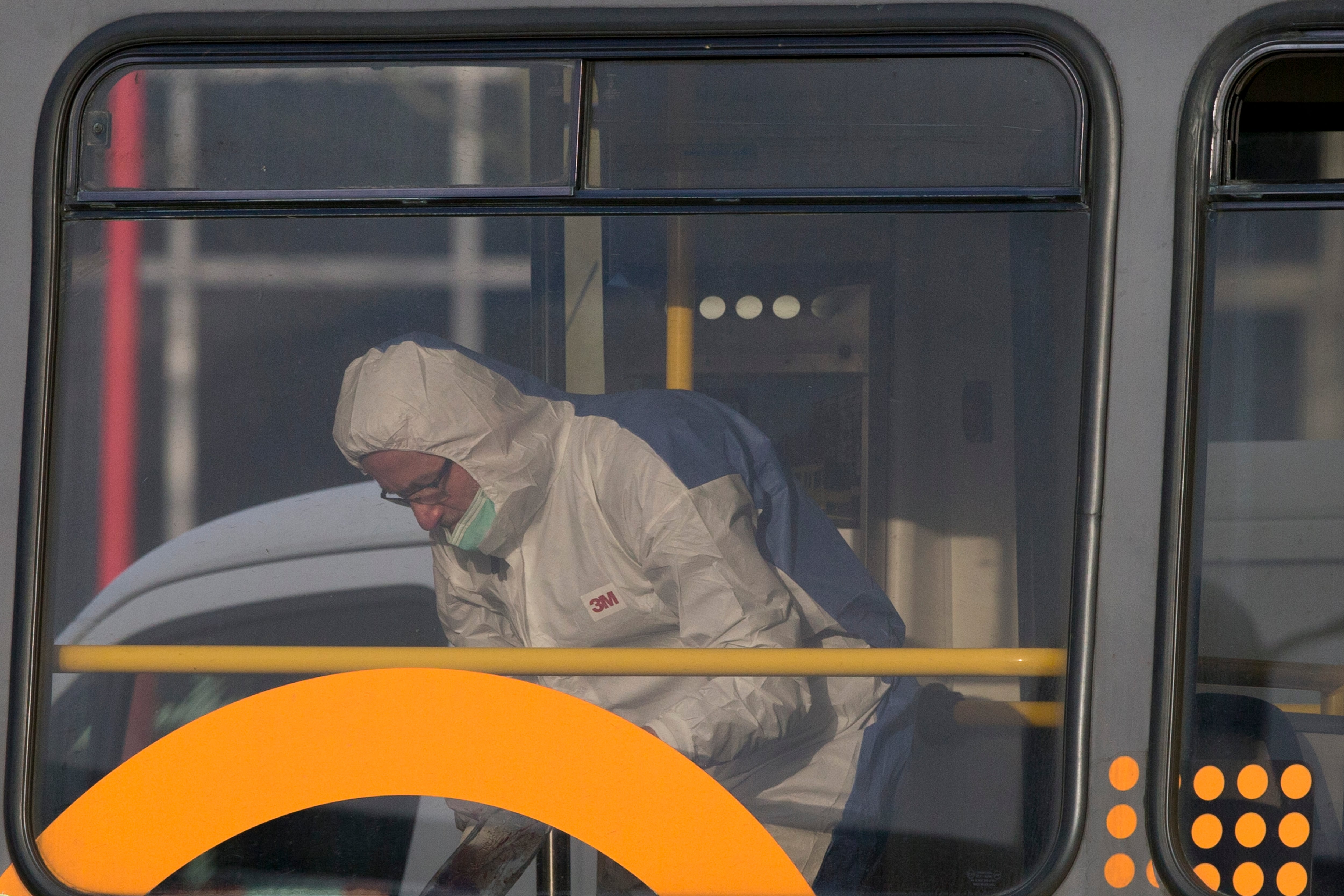 Imágenes de televisión mostraron lo que parecía ser un cuerpo tendido junto al tranvía.