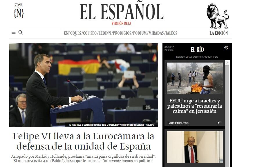 Un nuevo diario en línea, El Español, lanzado con medios colosales por uno de los periodistas más influyentes y controvertidos de España, Pedro J. Ramírez, se sumó este miércoles al ya rico abanico de medios digitales en este país.