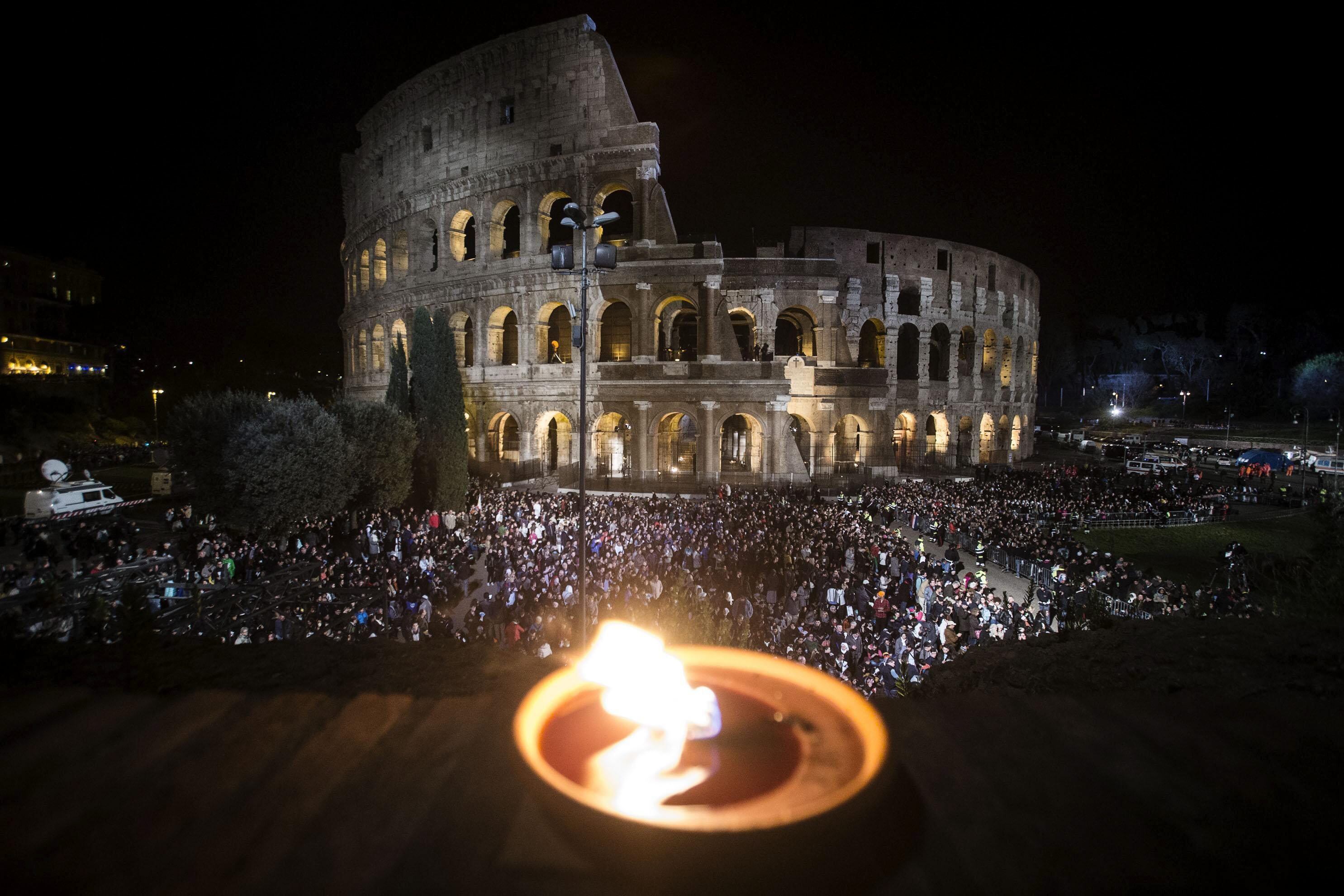 El papa Francisco llegó este viernes al Coliseo de Roma para presidir el tradicional Vía Crucis nocturno que conmemora el calvario de Cristo antes de la crucifixión y que está dedicado al drama de los refugiados en Europa.