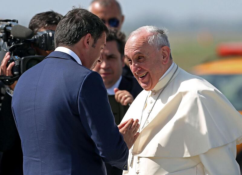 Como en las otras dos ocasiones, el Papa subió ayer al avión cargando su maletín de cuero negro con documentos y fue despedido en el aeropuerto por el primer ministro italiano, Matteo Renzi.