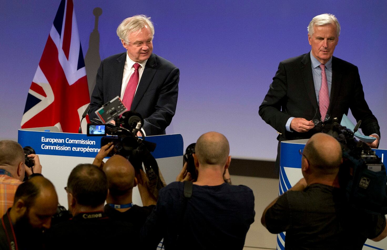 "En un primer momento, trataremos las cuestiones más apremiantes" para asegurar una retirada "ordenada" de Reino Unido y, "en una segunda fase, abordaremos nuestra futura relación", dijo el negociador europeo, el francés Michel Barnier, junto a su par británico, David Davis.