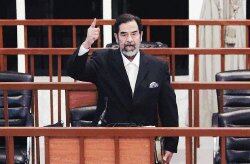 Mientras era conducido de regreso a su silla, con los brazos aún sujetos a la espalda, Sadam clamó: “¡Larga vida a Iraq, larga vida a los iraquíes! Alá es más grande que el ocupante”.