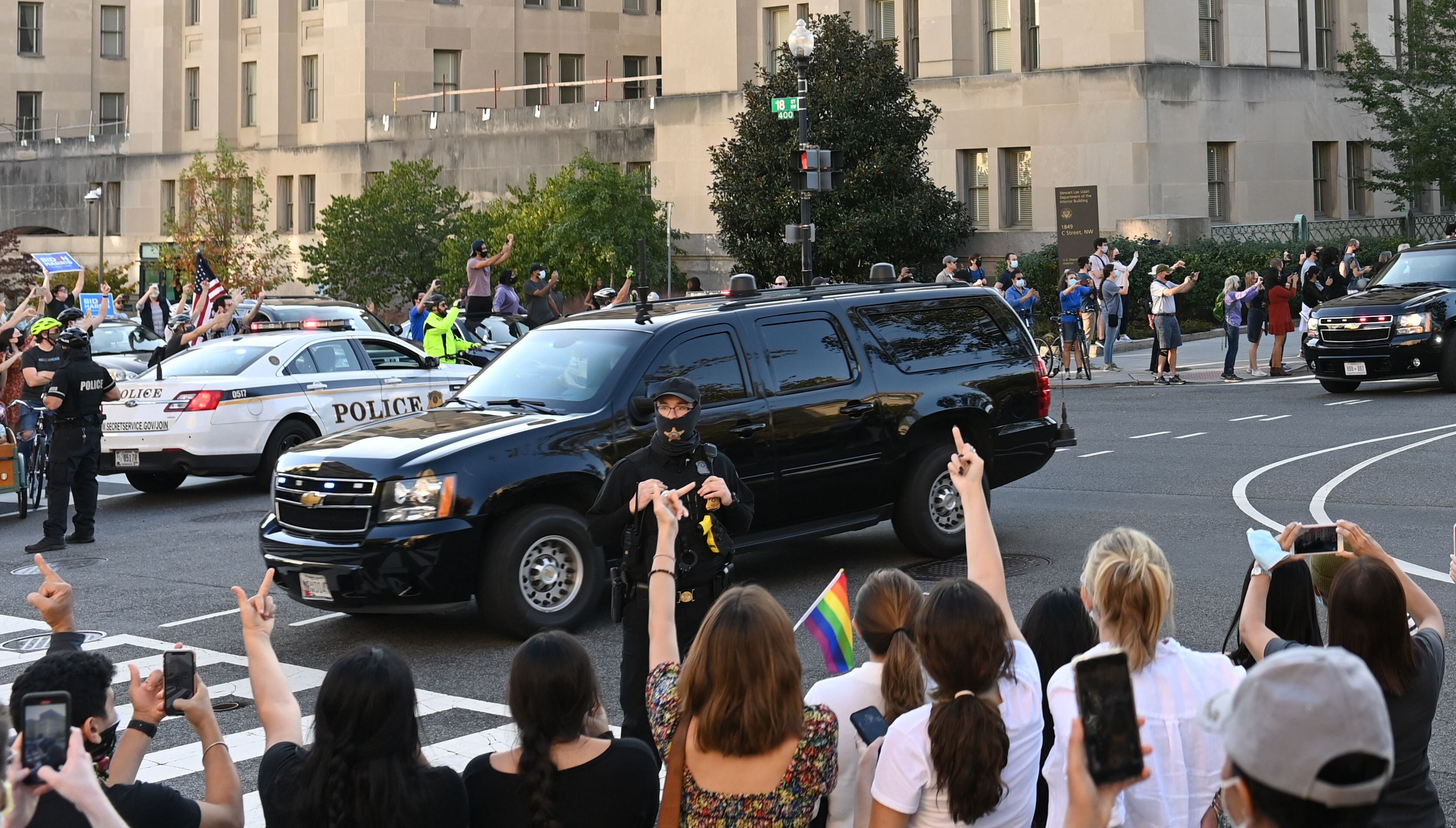 Algunas personas abuchearon al presidente a su paso por la capital política de Estados Unidos.