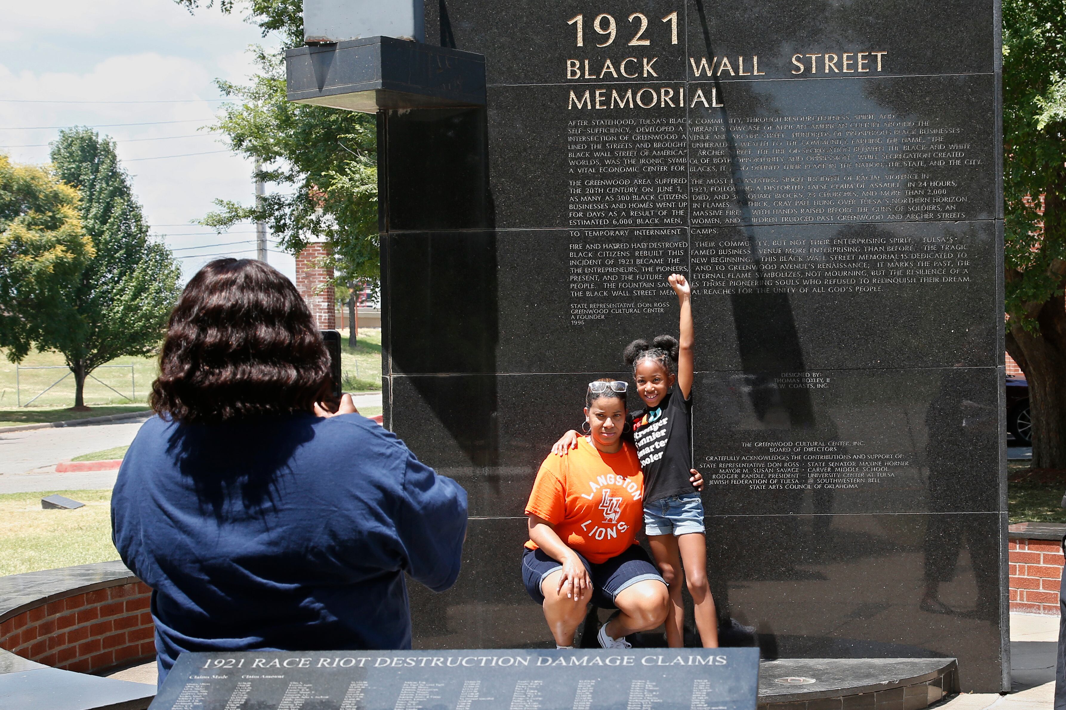 A pesar del intenso calor, visitantes de todas las razas llegan al sitio que ocupó la comunidad negra destruida. Se toman fotos junto a monumentos en lo que hoy le dicen el Wall Street Negro. Elevan sus puños en actitud desafiante para otra foto.