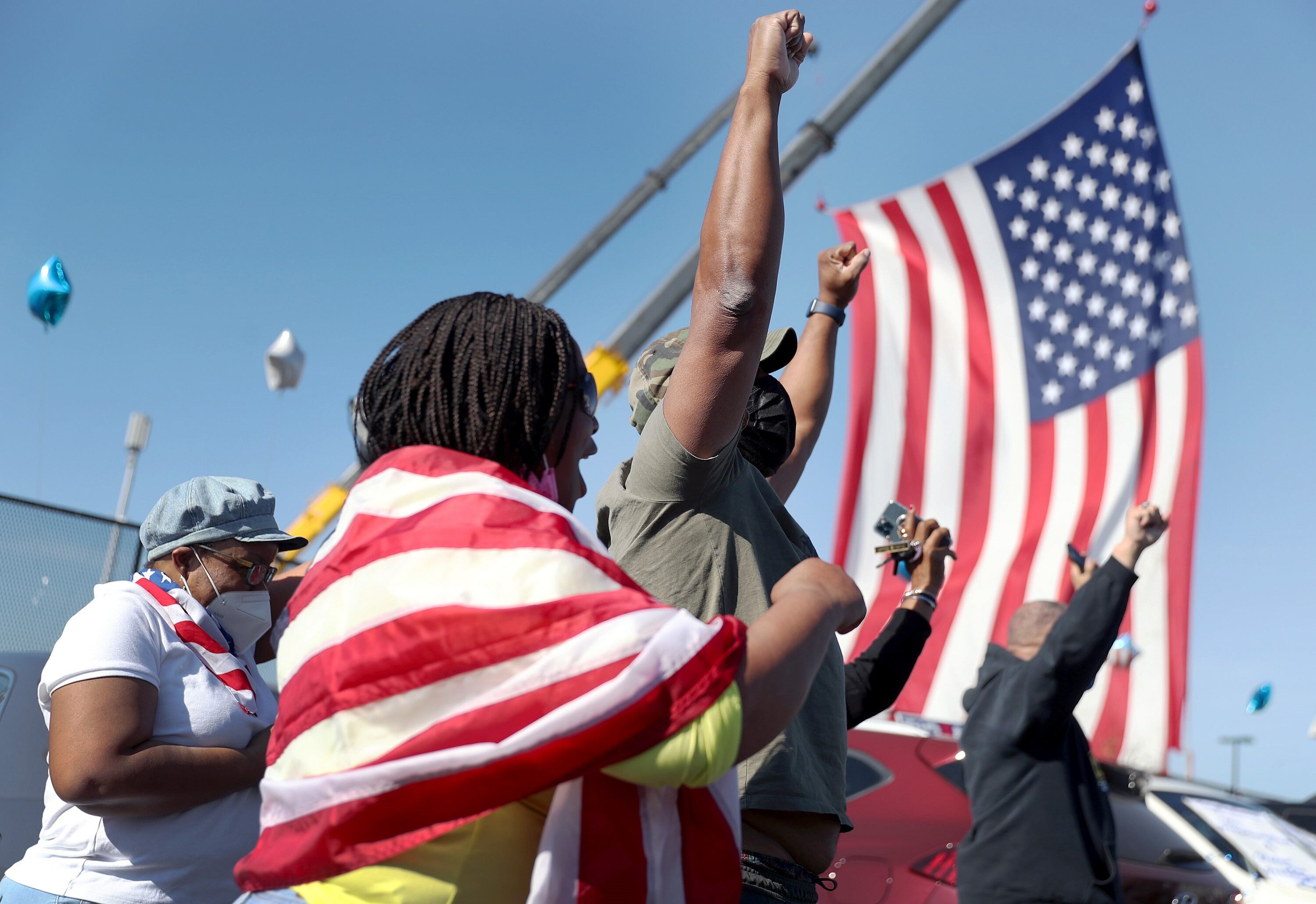 En grupos por las calles o a solas con familiares en las esquinas de barrios, miles de manos agitaron la bandera de Estados Unidos en las primeras reacciones del pueblo que, desde las urnas electorales, declararon su cansancio con la conducta polarizante y la caótica administración del presidente republicano Donald Trump.