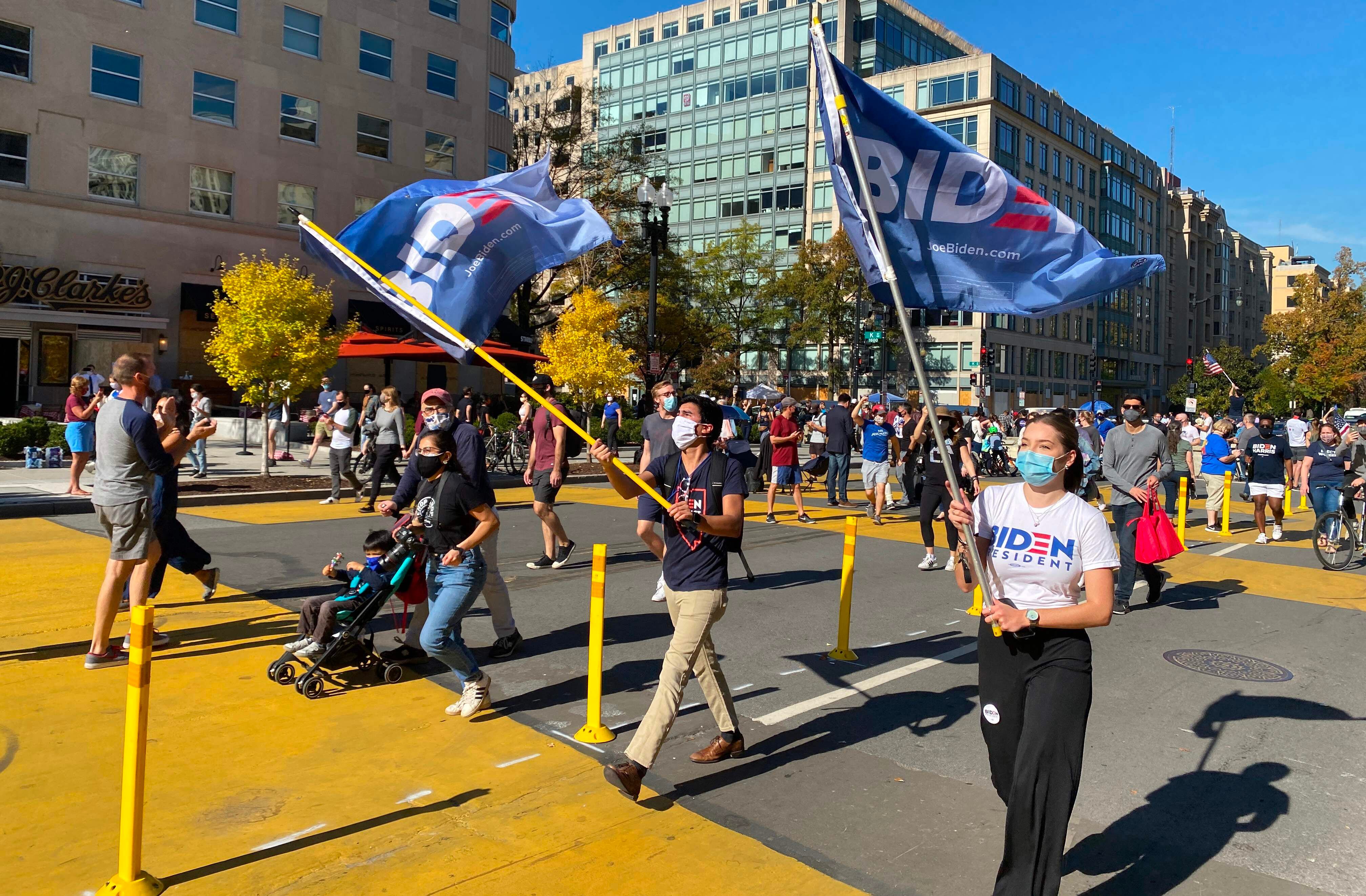 Pasado el mediodía, una multitud acudía este sábado 7 de noviembre al centro de Washington, cerca de la Casa Blanca, a celebrar la declaratoria de Joe Biden como presidente electo de Estados Unidos quien, de entrada, llamó a sanar la nación y trabajar juntos.