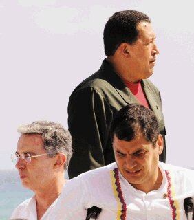 Cancun, México. AFP. Una fuerte discusión entre los presidentes Hugo Chávez, de Venezuela, y su par colombiano, Álvaro Uribe, derivó ayer en la creación de un grupo de países mediadores entre ambas naciones.