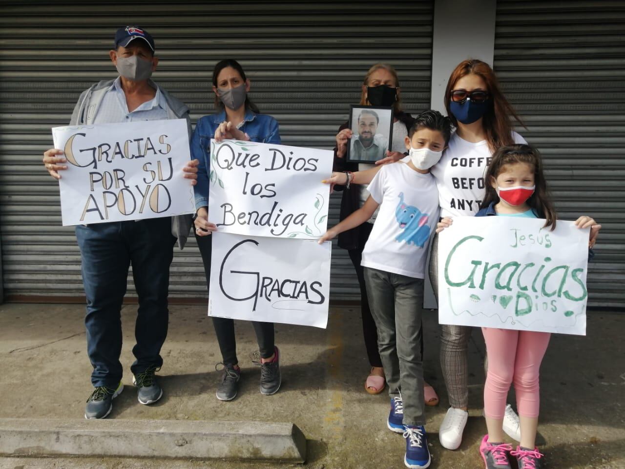 Los padres de José Ricardo, Noemy Mora y José Antonio Carmona, recibieron a la caravana, junto con otros familiares y la novia del ciclista fallecido, Rosita. Los papás de Ricardo viven en Limón, pero se mantuvieron en Cartago toda la semana.