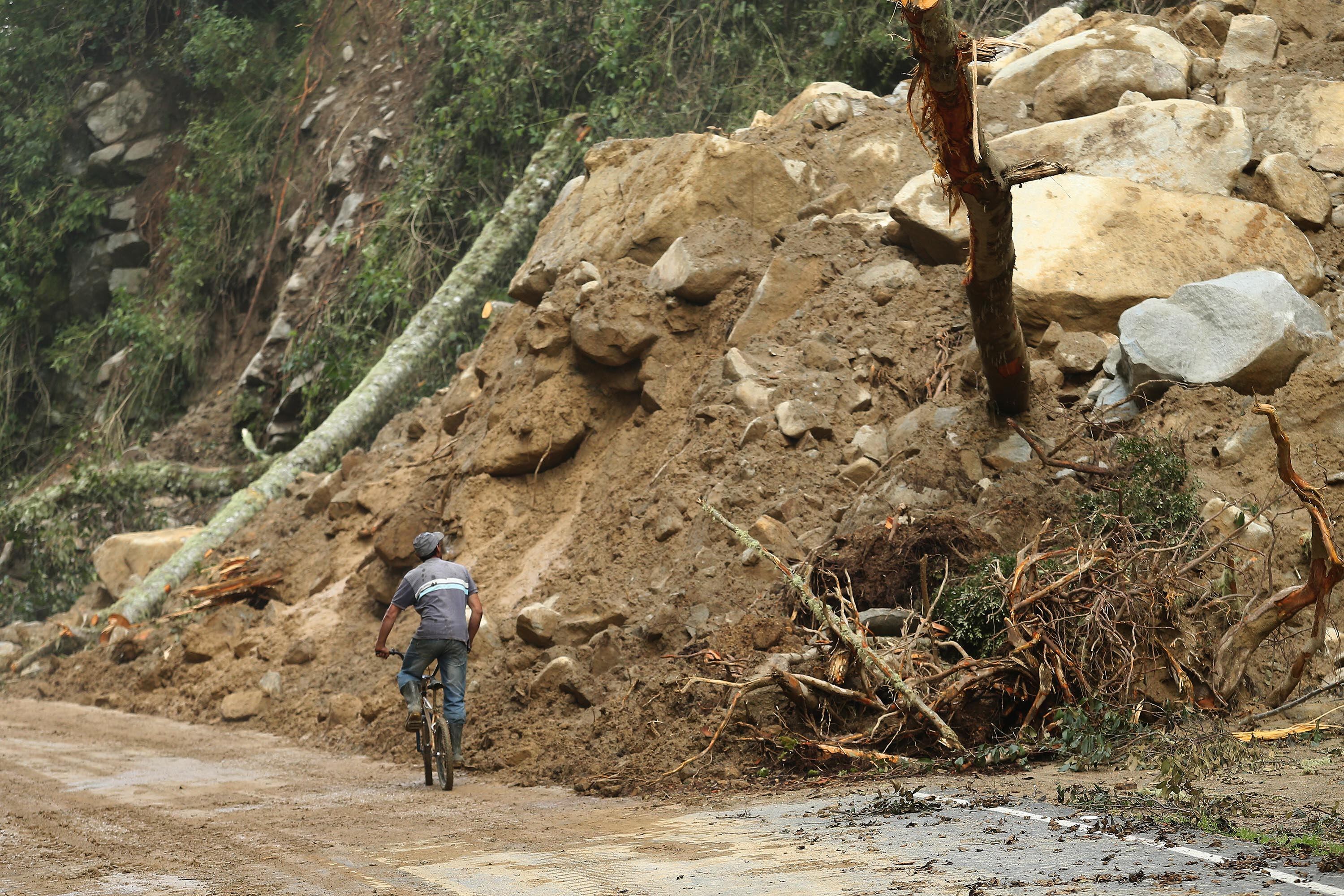En una sección de cinco kilómetros, aproximadamente, los derrumbes fueron tantos que varios buses, camiones y automóviles quedaron atrapados por más de una semana. Allí la maquinaria aún no ha podido limpiar la vía y los vecinos solo pueden movilizarse a pie o en bicicleta en medio del material caído.