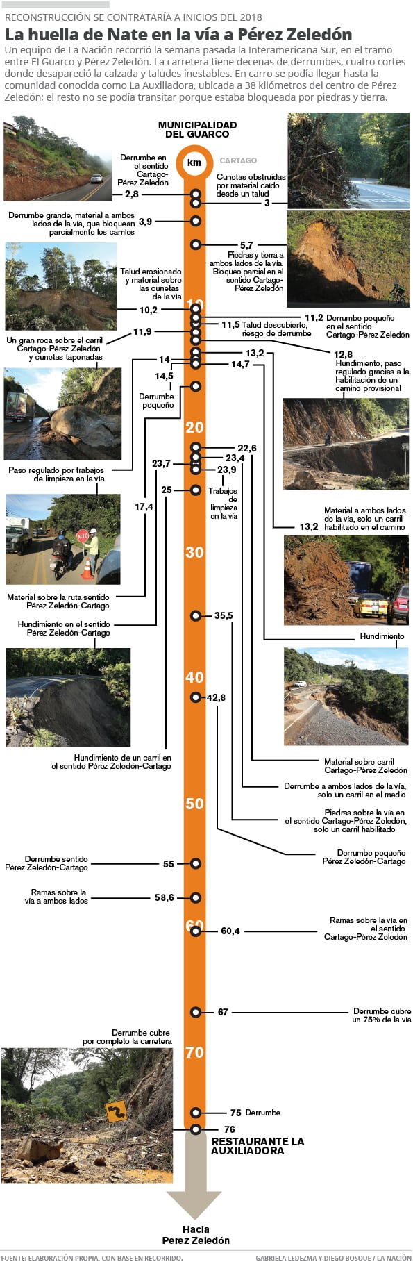 En 50 años de vivir a la orilla de la Interamericana Sur, Lesmes Salazar no había visto tanta destrucción en esa carretera luego de un temporal; sus ojos han sido testigo de los huracanes Juana (1988), César (1996) y Mitch (1998), pero ninguno golpeó tanto como la tormenta tropical Nate.