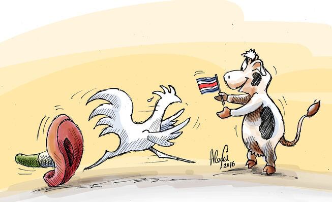 Esta es una de sus caricaturas más recientes, a partir de la noticia de la compra de Gallito por parte de Dos Pinos.