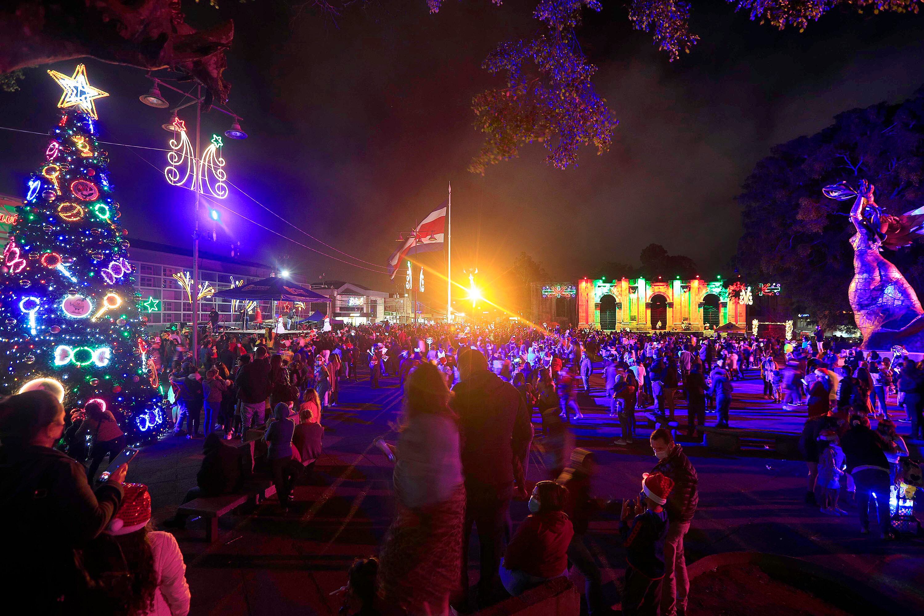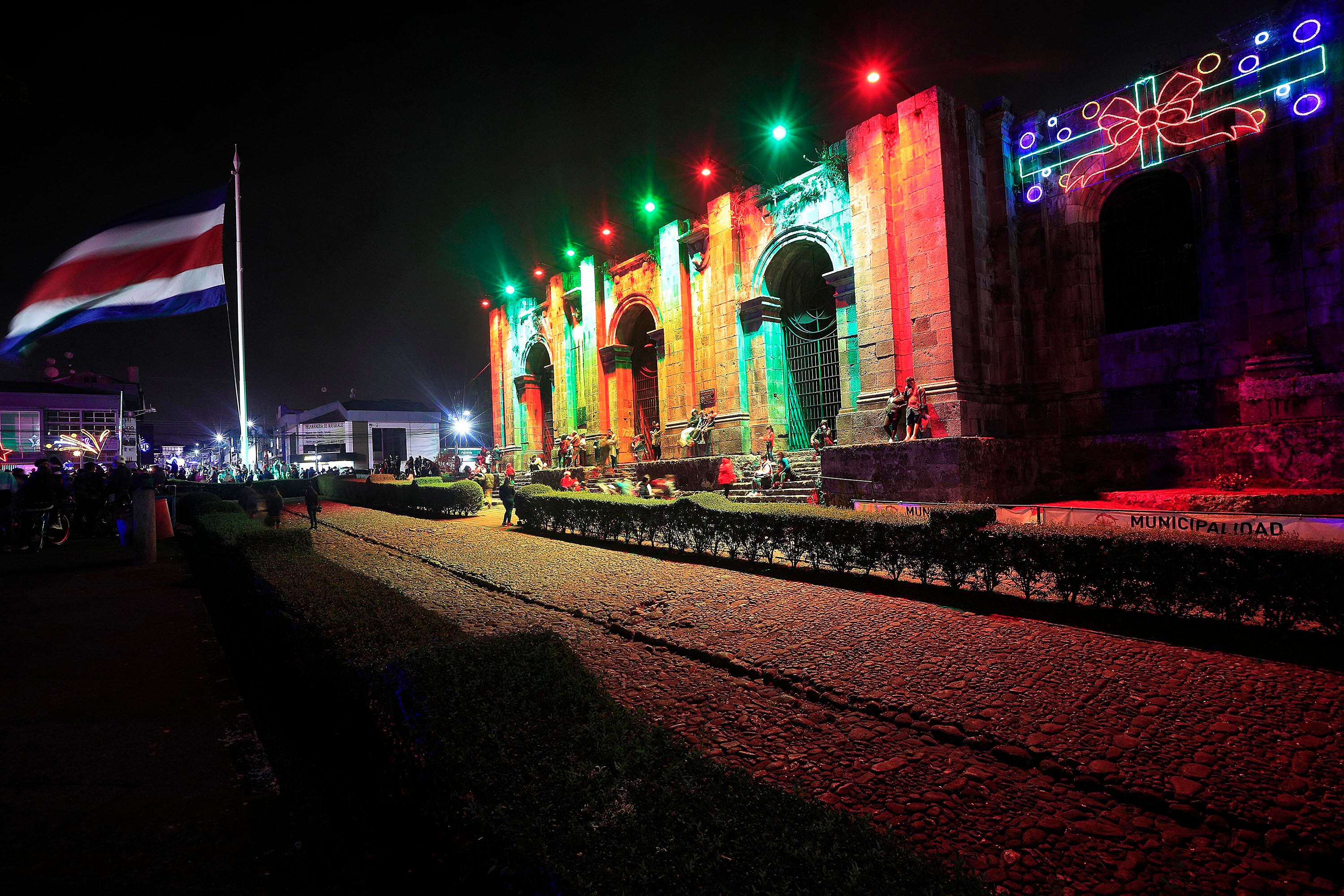 Se trata de 100.000 luces multicolores, más del doble que el año pasado, cuando se colocaron 35.000, esto con el objetivo de alumbrar estos emblemáticos sitios donde la Municipalidad de Cartago promueve actividades culturales.