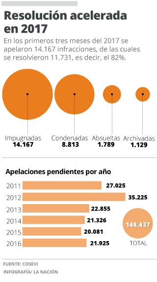 Eso explica por qué hay más de 148.000 apelaciones sin resolver en la Unidad de Impugnaciones del Cosevi, algunas planteadas desde el 2011. La entidad dispone de 45 abogados para atender la totalidad de reclamos.