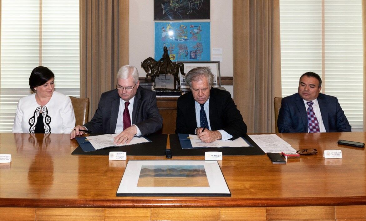 La firma de la Convención la realizaron Manuel Ventura, canciller de la República, junto con Montserrat Solano, embajadora costarricense ante la OEA, en una ceremonia celebrada en Washington, en la sede de la Organización.