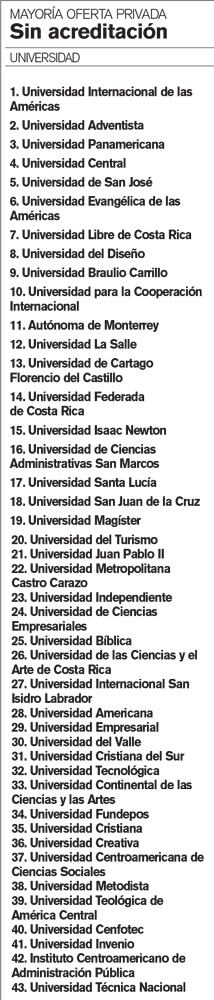 El 70% de las universidades del país (44 de 63) están fuera del Sistema Nacional de Acreditación de la Educación Superior (Sinaes) y, por ende, ninguna de sus carreras tiene sello de calidad.