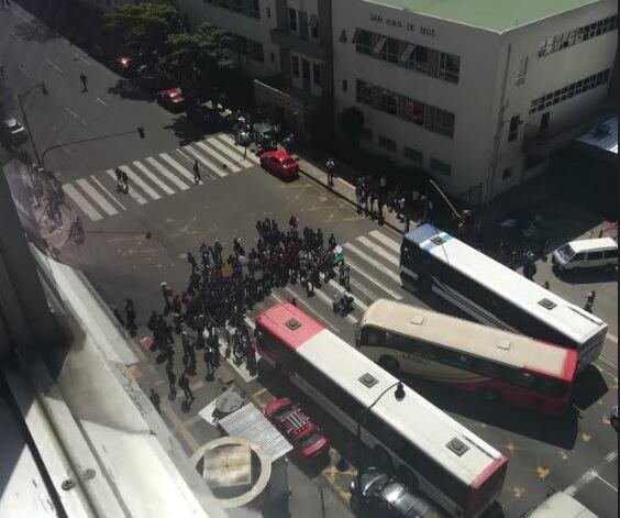 Unos 30 estudiantes de secundaria bloquearon la mañana de este lunes la vía frente al edificio Plaza Rofas, en San José, donde se ubica la sede del MEP, como medida de presión para que se eliminen las pruebas de bachillerato, cuyo inicio está previsto para el 30 de octubre.